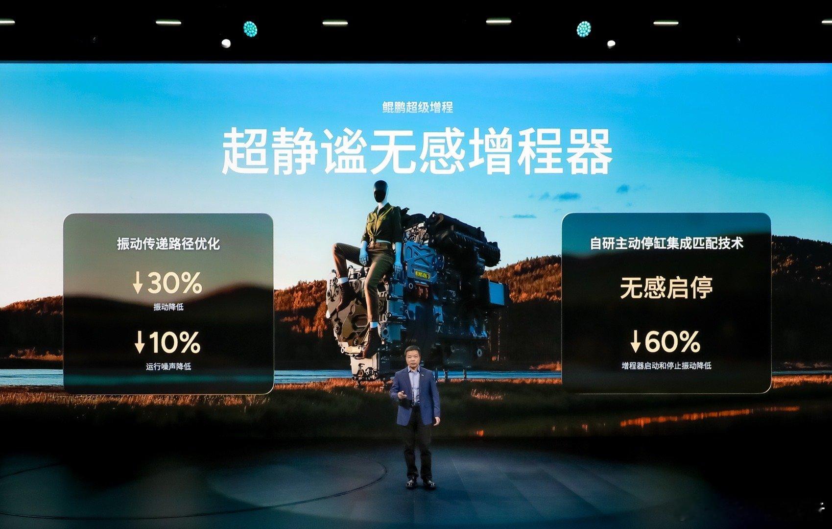 这四张PPT展示了小鹏这套增程系统的核心技术。搭载5C超充AI电池与全域800V高压平台,11.7分钟即可完成70% SOC补能。超静谧无感增程器,在启停场景可降低60%震感,日常行驶中更能减少30%震动与10%噪音。1602公里全球最长续航,8% SOC动力不衰减。