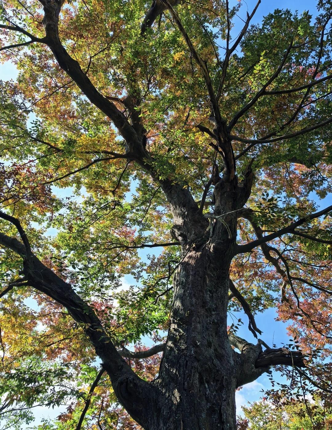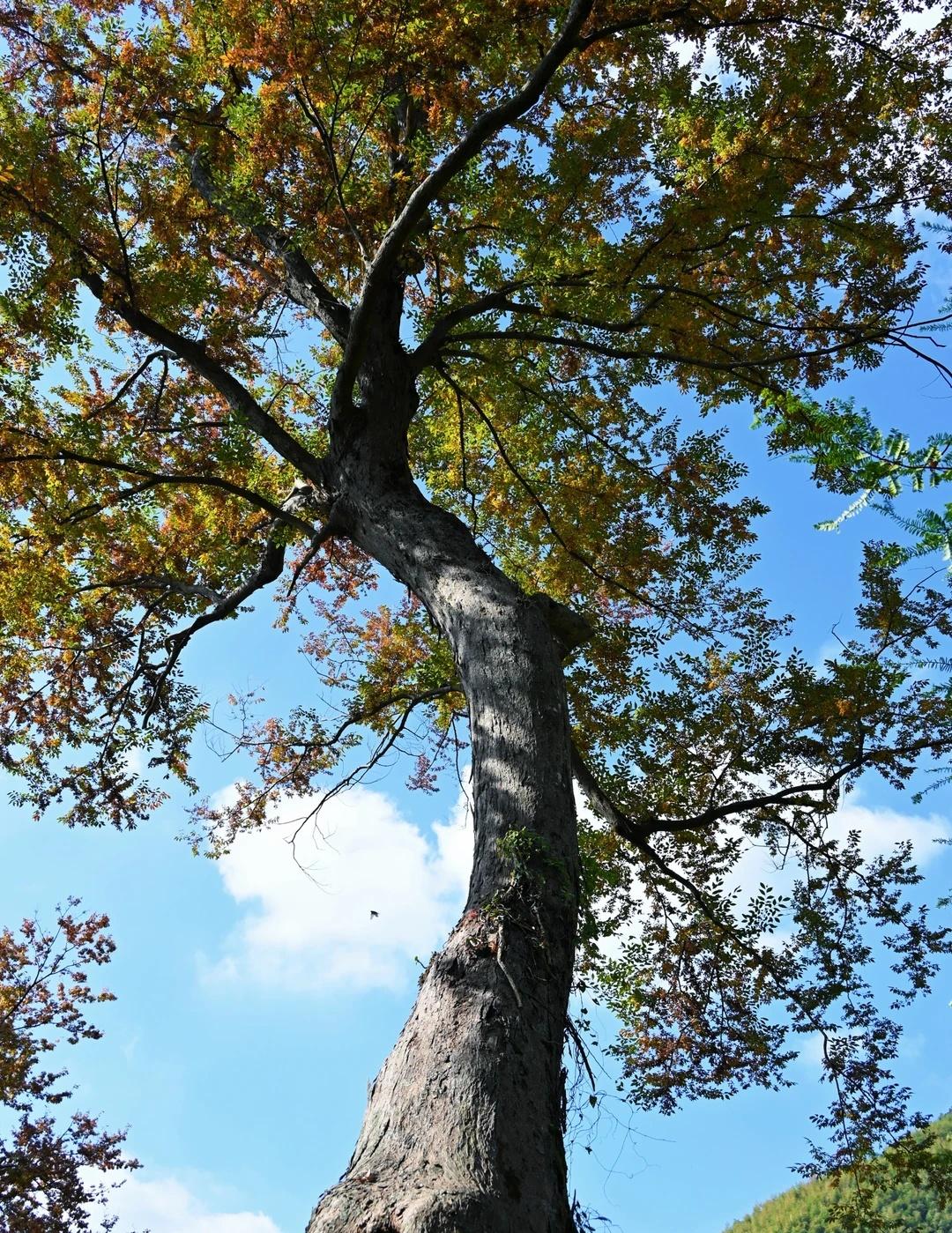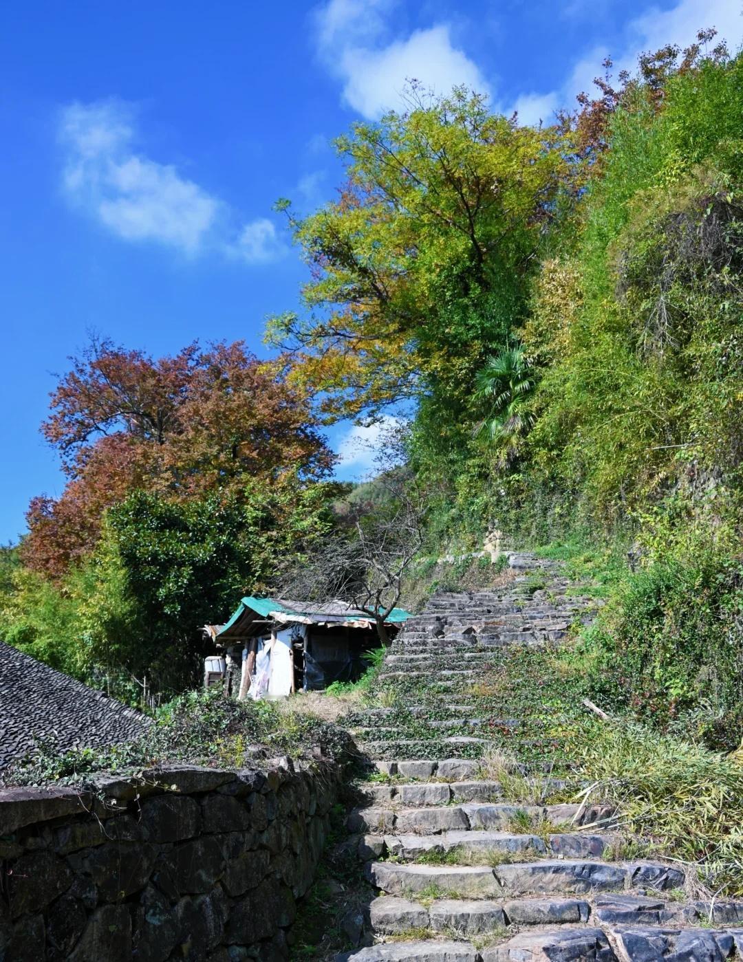 别挤四明山了!宁波1h的私藏赏秋徒步路线 徒步的起点塔竹林,那棵传说中的千年银杏虽尚未披上“黄金甲”,但它的苍劲枝干已足够诉说岁月的故事。真正的秋日序幕,是由村口那片515年树龄的枫香古树群拉开的。深秋的阳光为它们染上了红黄相间的色彩,树干需几人合抱。最动人的是,古老的古道石阶与虬龙般的树根早已盘错在一起,你中有我,我中有你,共同见证了数百个春秋的轮回与静好。 -- 随着海拔的升高,大山村的秋色显然更为浓烈。这里的古树群因山间清凉的气温,叶片变色更甚,枫香、榉树等交织出层林尽染的斑斓世界。村中一棵造型奇特的大榉树堪称“树中舞者”,巨大的树洞仿佛是它的个性宣言,它舒展着枝桠,在远山和蓝天白云构成的广阔舞台上,迎着秋风翩然起舞,尽显生命的张力与秋色的狂野之美。脚下的古道在树下蜿蜒,引着徒步者穿行于这片绚烂之中,并可继续向南山茶场、徐马站等更深远的地方探索。 -- 环线的收尾畈头村,将本次赏秋之旅推向了高潮。村边山坡上,一棵巨大的古银杏已全然金黄,如同一个明亮的火炬矗立在天地之间。古老的驿道从树下穿过,散落在周边的古民居更添了几分沧桑。此处是俯瞰的绝美位置,从高处望向横山水库和远处的田园,黄叶、黑瓦、碧水、青山共同构成了一幅无可挑剔的绝美田园风光图。穿行在村落里,看着村民在古树、古宅下悠然劳作,时光在这里仿佛被调慢了速度,让人瞬间从都市的喧嚣中抽离,感受到了久违的宁静与平和。 --- 👉徒步攻略: 🚗自驾导航:直接导航至奉化区尚田镇“塔竹林”村,可作为环线的起点和终点,村口路边有空间可停车。 🚌公共交通:从宁波市区可乘坐地铁3号线至金海路站,换乘公交(251路等)前往尚田街道的畈头村,以此为徒步出发点(班次较少,务必提前查询时刻表)。 🍚就餐建议:路线沿途村落商业设施稀少,强烈建议自备干粮和充足饮用水,在古树下或观景台来一次秋日野餐。徒步结束后,可以驱车前往奉化城区或尚田镇区,品尝地道的奉化牛肉面、千层饼等美食。 🌴周边联动:时间充裕的话,可以顺道游览横山水库周边,或前往大堰镇欣赏更为广阔的红枫和古道秋色。 ❗️可参考轨迹为4883282 徒步踏秋地图 小众赏秋地 去山里过秋天 徒步踏秋去 谷丰的徒步日记 宁波徒步 宁波爬山 亲子徒步