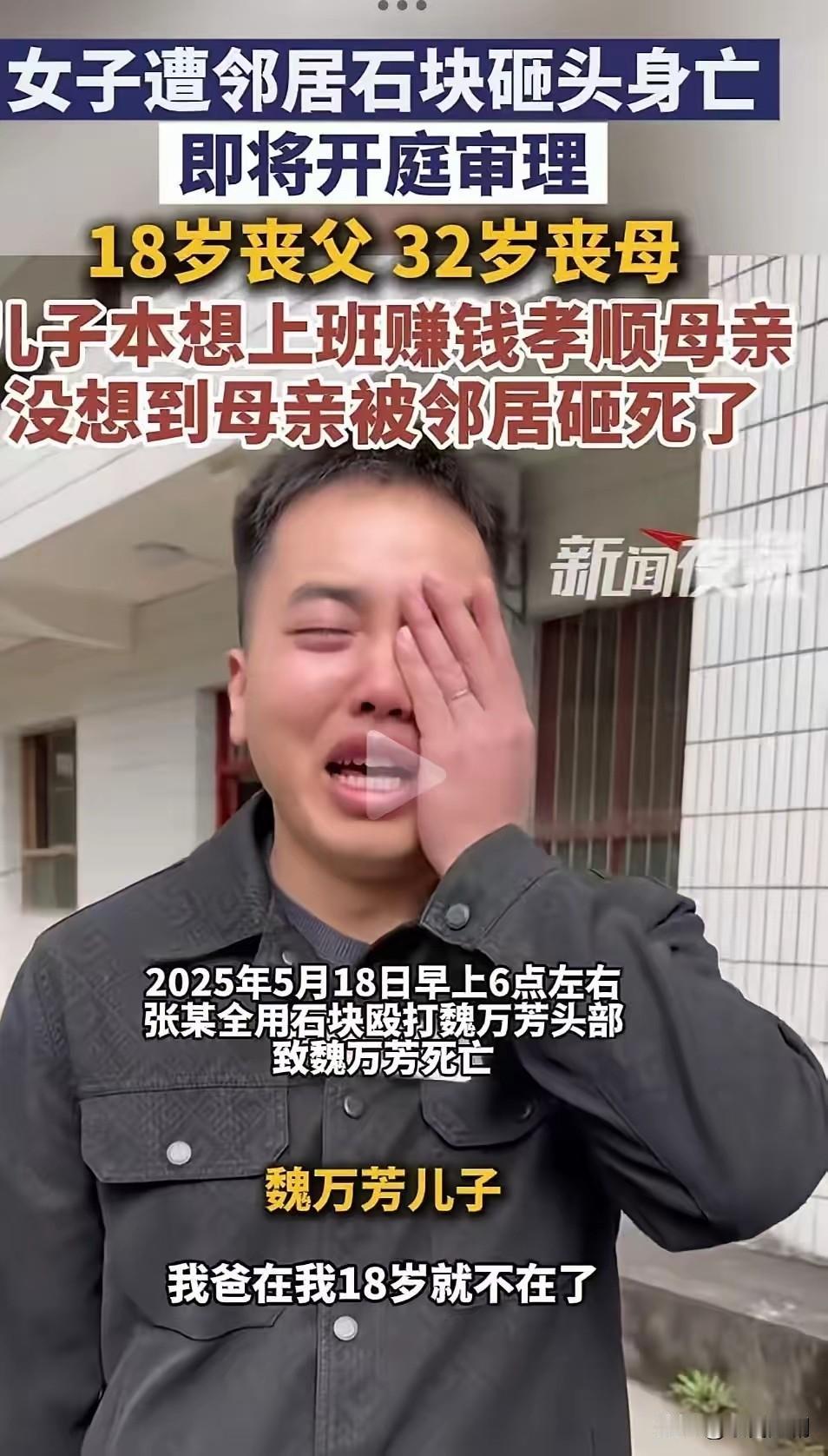 这是一场令人惊愕的悲剧,更是一次对邻里关系与法律伦理的深刻省思。女子只因不同意邻居在自家地上修建排水沟,竟遭邻居投掷石块击中头部,不幸离世。这起事件不仅令人痛心疾首,更引发了社会对公共关系、法律责任以及道德底线的广泛关注。 事件的起因看似是邻里间围绕土地使用和基础设施建设的纷争。女子坚决反对邻居在自家土地上修建排水沟,或许是出于维护土地权益,又或是担忧工程会带来环境或安全方面的隐患。而邻居可能因无法接受异议,便采取了极端暴力的行径。这种以暴制暴的做法,彻底破坏了本应有的邻里和谐,最终酿成悲剧。 女子32岁的儿子,悲愤之情难以抑制。回忆起母亲的离去,他的心中满是痛苦与愤怒。“我18岁丧父,如今32岁又丧母,我好不容易大学毕业,想着好好上班赚钱孝顺母亲,没想到母亲竟被邻居砸死了。”这番话道出了一个家庭的支离破碎与人生的无奈。母亲的离世,不仅让家庭失去了温暖,也让未来的希望变得黯淡无光。儿子的梦想与努力,仿佛在这一刻都化为泡影。 这起悲剧引发了社会的高度关注。邻里间的矛盾本应通过沟通和协商来化解,而非诉诸极端手段。法律必须介入,追究肇事者的责任,维护社会的公平与正义。同时,这也提醒着我们每个人都应尊重他人的权益和生命底线。暴力绝不是解决问题的良策,唯有理性与法治,才能避免类似悲剧再度上演。 对于受害者家庭而言,失去亲人是无法弥补的伤痛。社会应给予他们关怀与支持,同时加强法律宣传,让更多人认识到暴力行为的严重后果。每一个生命都值得敬重,每一段邻里关系都应建立在理解与包容的基础之上。 愿逝者安息,也愿这起悲剧成为社会反思的契机。让我们携手努力,营造一个和谐、安全的生活环境,让此类悲剧不再发生。