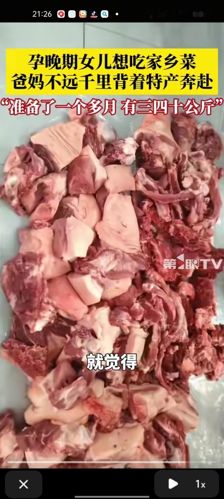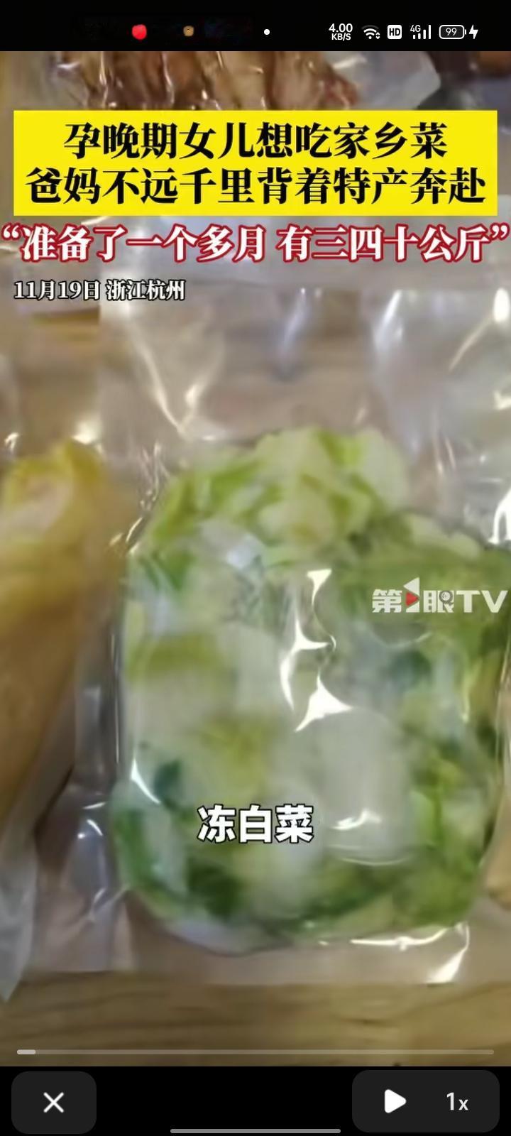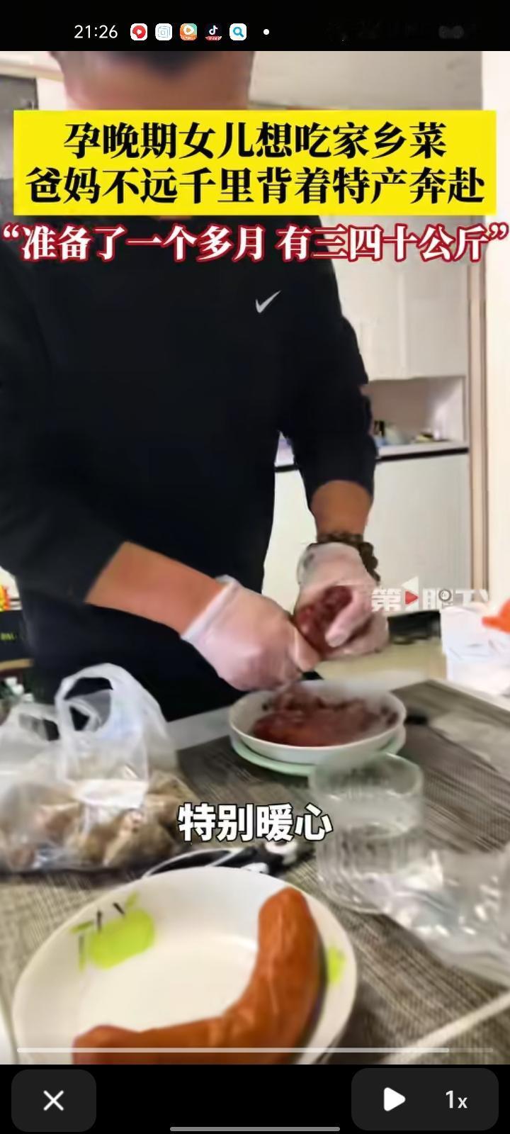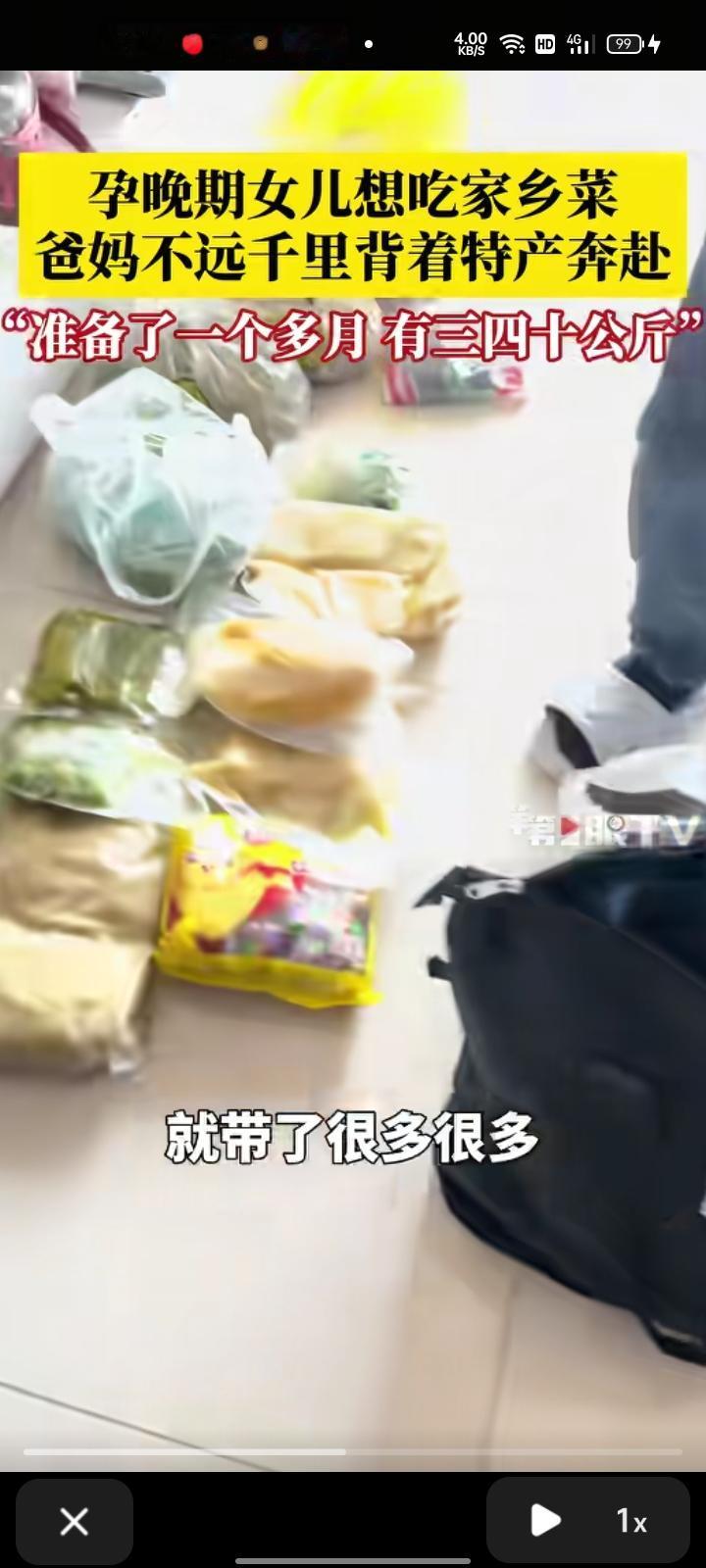 11月17日,浙江杭州。孕晚期的女儿想吃家乡菜,父母不远千里背着特产奔赴,大概三四十公斤,他们一个月前开始陆续准备了。女儿毕女士表示,孕晚期吃上家乡菜,非常暖心,胃口特别好。