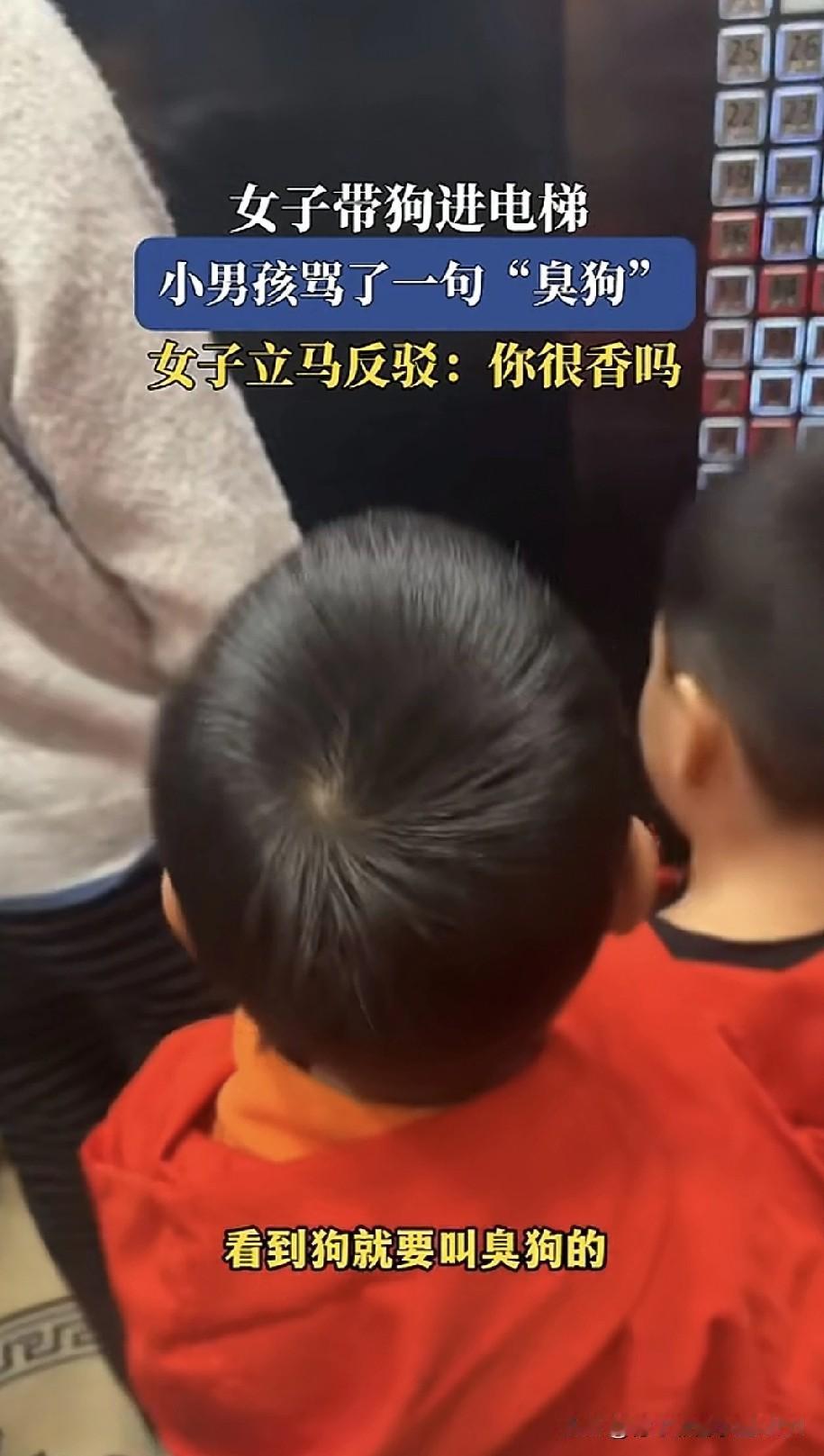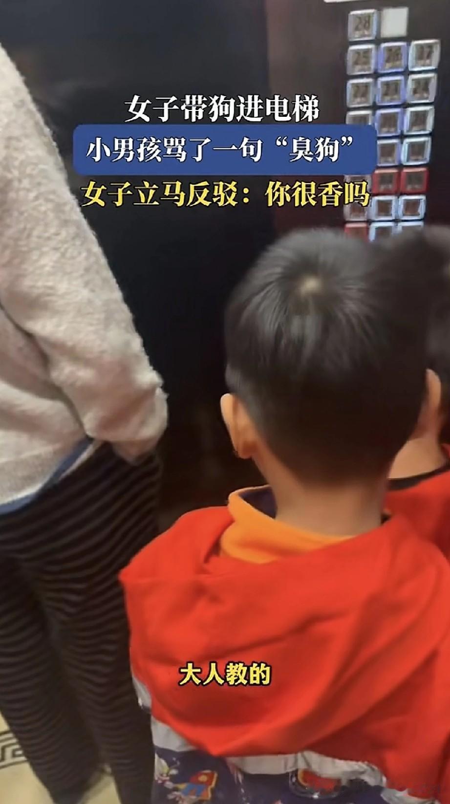 女子带着狗进入电梯,电梯里的两个小孩骂了句“臭狗”。孩子家长当即提醒:“你们两个,别这样说话。”女子一进电梯便立刻反驳:“小朋友,你们很香吗?从哪儿学的,看见狗就叫臭狗,是大人教的吗?” 此言一出,孩子家长不乐意了:“什么叫大人教的啊?不能这么说我的小孩。” 女子大声质问:“小孩子不懂事,大人也不会教吗?”双方随即争吵起来。 孩子家长赶忙喝止小孩:“你们两个,别这样说话。”之后,狗主人仍不依不饶:“从哪儿学的,是大人教的吗?”这明显是在骂大人。若小孩说“臭狗”是没礼貌,那这狗主人说话也是阴阳怪气的,最让人恶心的就是这种阴阳怪气的人。 即便小孩说得不对,狗主人也不该阴阳小孩半天。当时这家长就该回怼,跟孩子说:“别当着人家面说人家父母,人家会不高兴的。” 我养过狗,也很喜欢狗,但我觉得这点小事狗主人忍一忍就过去了,跟小孩子计较什么呢?毕竟是把狗带到了公共场所。带狗等电梯时,我定会把狗狗拉到一旁,离人越远越好,先让别人走。即便我先上了电梯,后面有人来,我也会先下去,更何况还有小朋友。毕竟真有人害怕或厌恶狗,所以得自觉点。不是人人都喜欢狗滴。