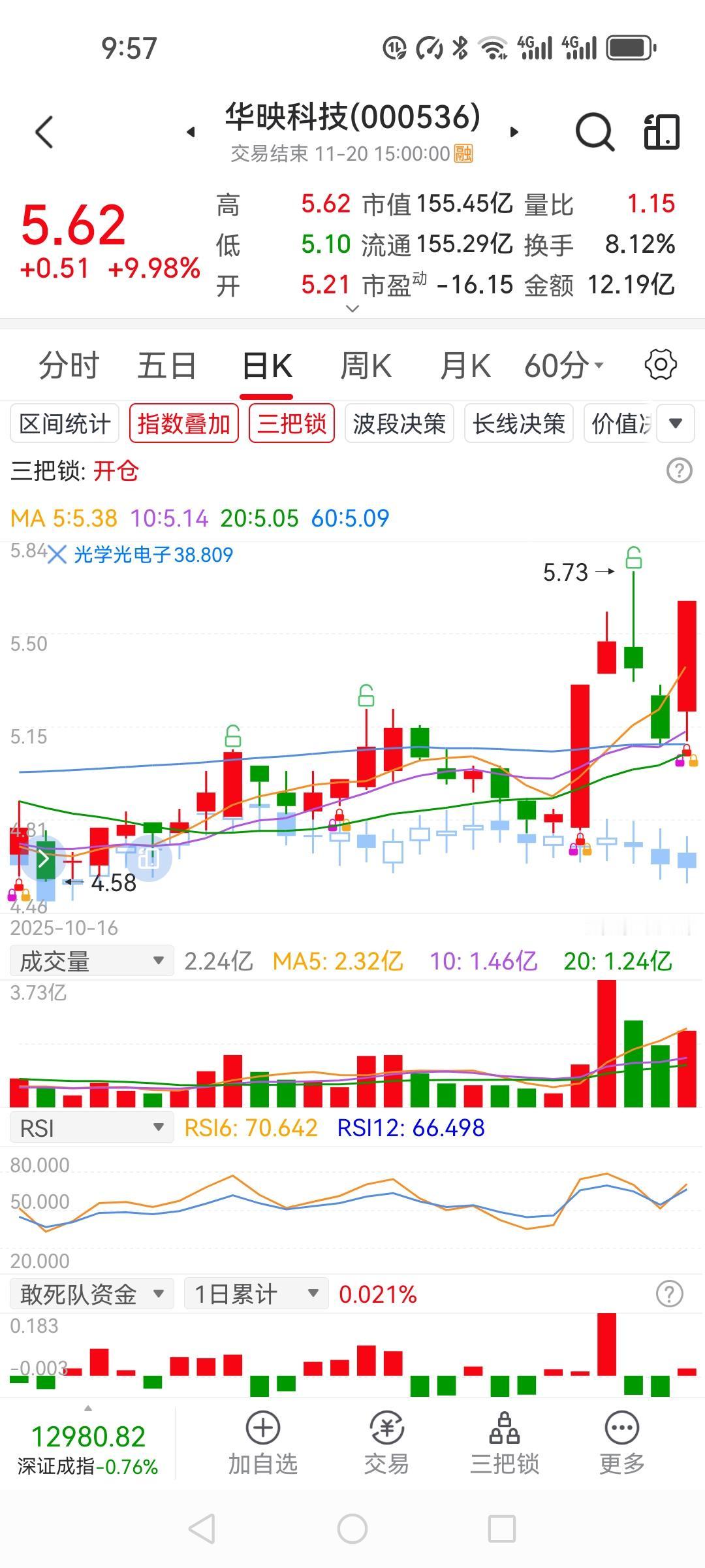 今天我有两只股票涨停,太出乎我的意料了。 实达集团我在上次涨停板4.09时当天卖出,第二天就低开下跌,我又在3.9元的时候买回,有点着急买早了,最低跌到3.7,经过11天的调整,今天很意外的涨停了,难道有什么好消息吗? 华映科技我是17号5.45买的,当时计划第二天上涨就卖出,打个短线。可是第二天开盘不久就涨了6个多点,心想是不是能涨停,就没有卖出,结果在你犹豫的时候就掉头向下,再也没有反弹,反而被套了,三天的调整今天涨停了,让我感到非常意外。 航天电子今天我把昨天买的T了出去,10.7想接回来,没有成交,明天继续在10.7以下挂单买入。其他的股票还是绿的,就持股不动。 这次不知道会不会一日游,感觉已经冲过压力位了,还有可能继续上涨,但愿梦想成真吧!有对这两只股票了解的可以给点建议,谢谢!个人分享炒股心得,不存在推荐,股市有风险,投资需谨慎。 实达集团 华映科技