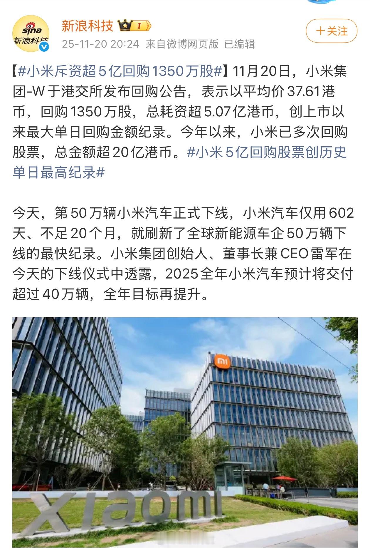 雷军说:我们有钱是真的有钱,拿了 5 亿买回来了 1350 万股,最近负面缠身,小米股价跌了一些,这时候主动回购,也就是证明,我对我自己有信心。信号很明确,是不是可以抄底了?