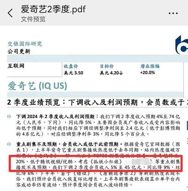 或许很多人都不知道财报女王刘诗诗的含金量。我特意翻了下爱奇艺美股财报发现,平台高