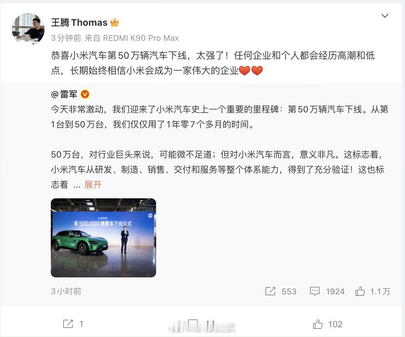 老话说:优秀的公司赚取利润,伟大的公司赢得人心虽然王腾被雷军绝情开除,但王腾依然对小米充满信心,相信小米能成为伟大的企业,但也说明在王腾心中,小米现在还不是伟大企业,大家觉得小米怎么样才算成为伟大的企业呢?