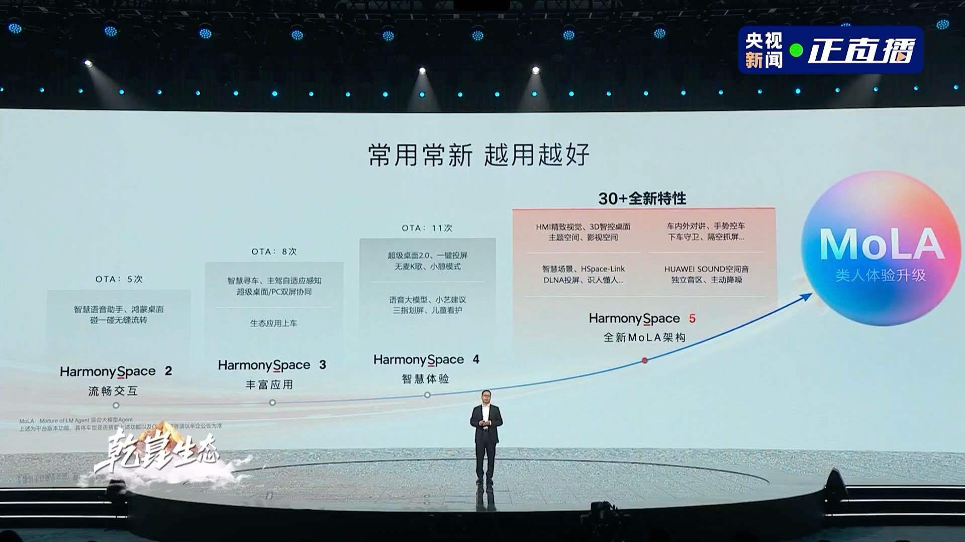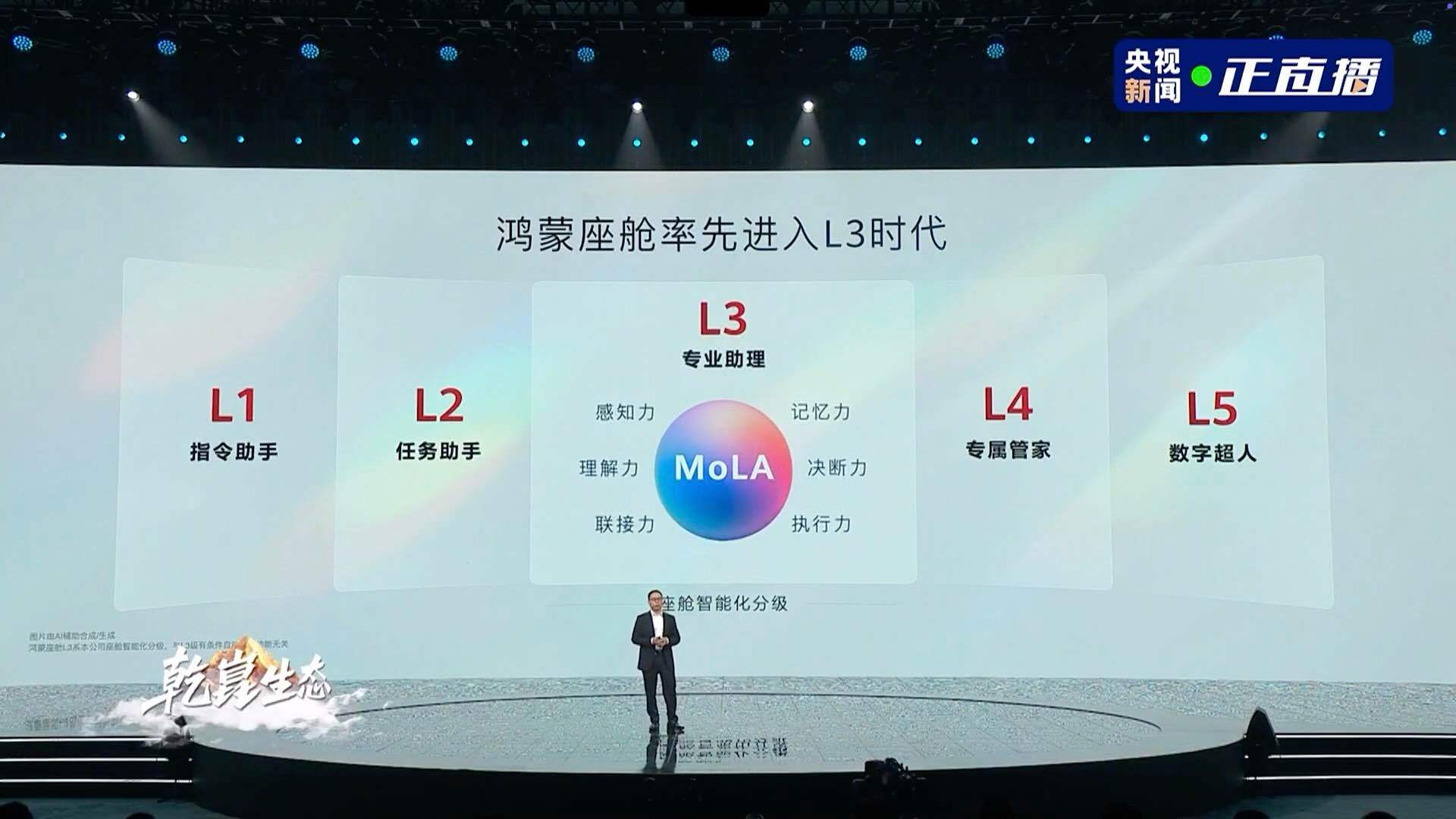 华为乾崑生态大会在广州盛大启幕,会上鸿蒙座舱携 MoLA 混合大模型 Agent 架构重磅亮相,不仅首推座舱智能化 L1 - L5 五级分级标准,更以全感官体验、自然交互与主动服务三大方向,重塑智能座舱行业发展格局。目前鸿蒙座舱用户数已突破 120 万,2025 年 1 - 10 月问界车型搭载版本的平均净推荐值达 93.6%,成用户口碑之选。