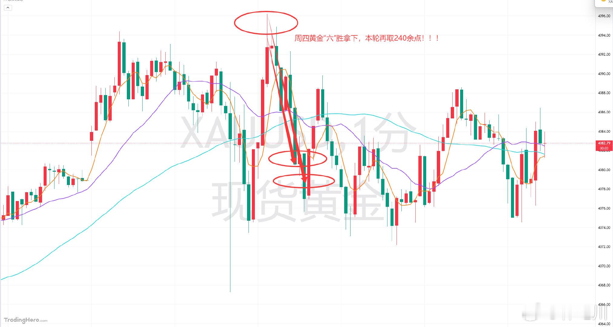 【周四日内续下“六”连胜,单单斩利,势不可挡!】晚间黄金分享给到4091的空单,下抵4075一线通知大家护利,场外跟上的粉丝朋友之间就是160点轻松收下!那么盘内在这单的操作上,老韩本人指导提前已是安排在4093/4095执行双空下看,4093的空单,下抵4083附近先手收割,拿下90余点!其外4095的空单,下抵4080通知减持,4075一线反弹,4079全线收割,又是再取150余点!双单共计斩下240余点!盘中客户再度增益1.4万余美金!【博文布局分享且点击链接查看】 行情变幻莫测,把交易看淡,静心等待,才能在行情涨跌当中捕抓机会,稳定长盈!本人实时指导下,每单无论是进场还是出场都会做到坚决果断,从不拖泥带水,这是老韩本人一贯的带单风格!其中风险是必然的,如何控制风险,把风险降到最低,那是老韩的事情,你们只需信任执行配合好即可!只有控制好风险,收获才会自然而然到各位手中!!