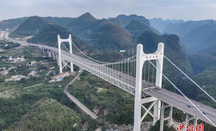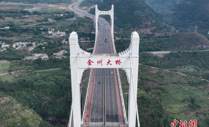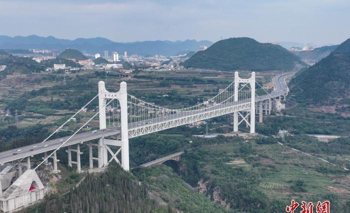 【航拍贵州兴义金州大桥】聚焦贵州 11月20日,航拍贵州兴义金州大桥。金州大桥位于贵州省黔西南布依族苗族自治州兴义市,全长1600米,主跨450米,桥高235米。金州大桥将高桥技术与旅游体验相结合,依托跨越马岭河峡谷核心景区优势,创新打造了“桥上瞰山河、桥下观飞瀑”等为一体的桥旅新模式。(记者 瞿宏伦)
