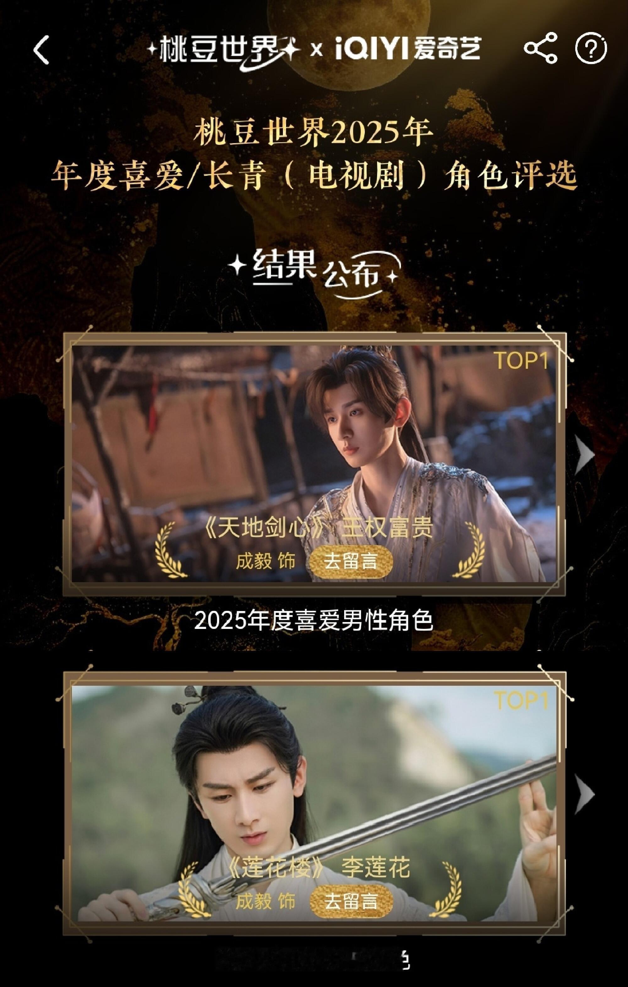 爱奇艺的最新桃豆世界20252025年度喜爱男性角色:王权富贵 《天地剑心》2025年度长青角色:李莲花 《莲花楼》成毅热度还是高~~怎么都火火的,各路人马都爱关注他
