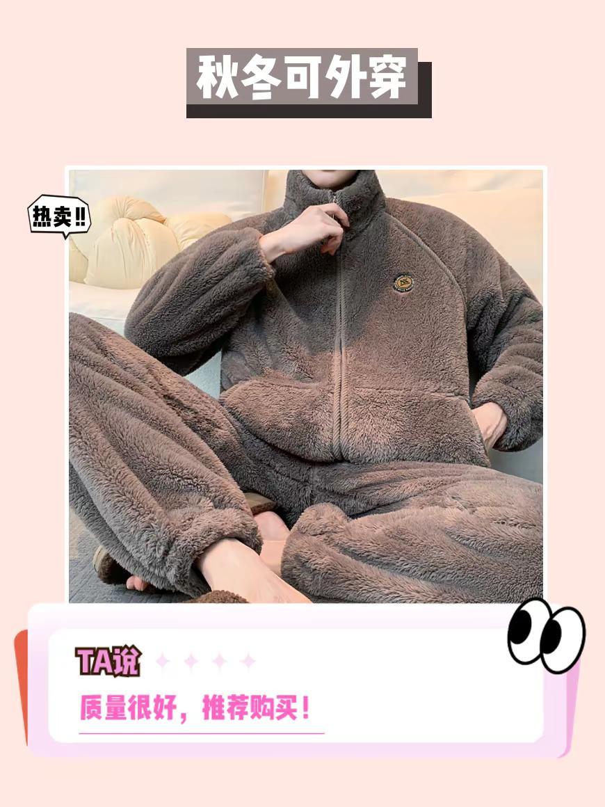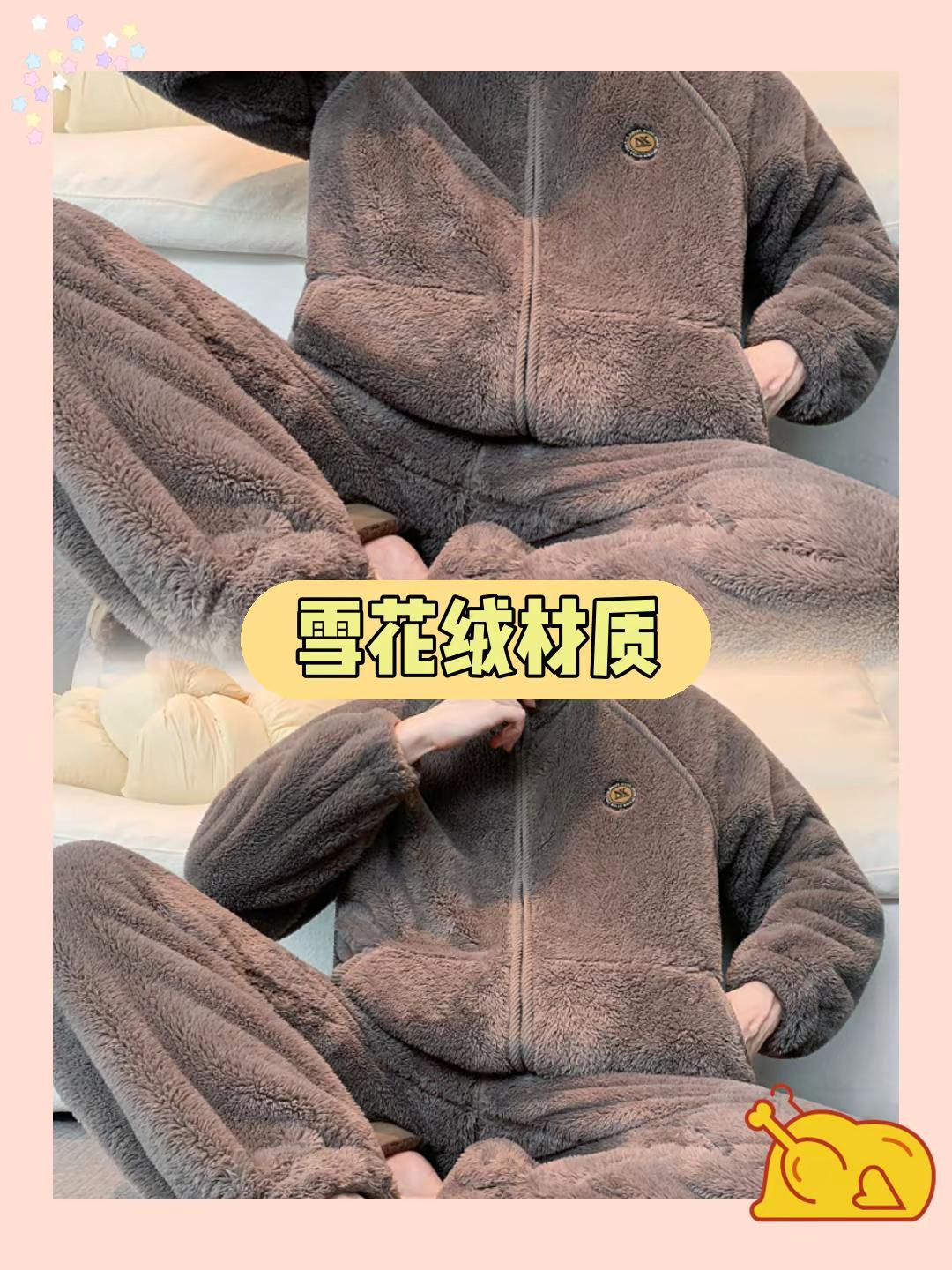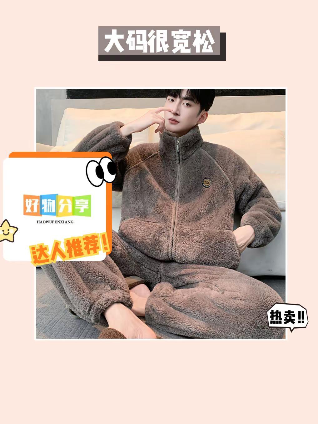 快给男士安排这套家居服🤩。秋冬必备男士家居服!美拉德棕男士大码宽松雪花绒家居服套装,法兰绒材质超柔软,宽松版型超舒适,可外穿超实用,赶紧入手!