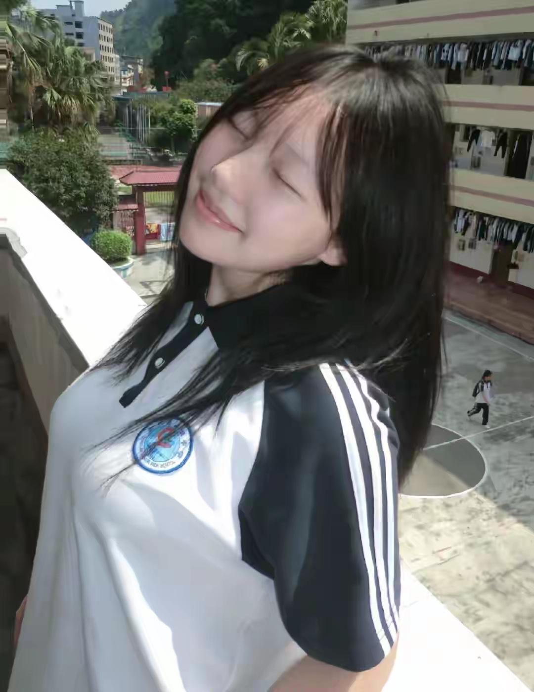 阳光明媚,女孩微笑闭眼。少女感笑容少女感微笑女孩美少女的微笑小姑娘微笑