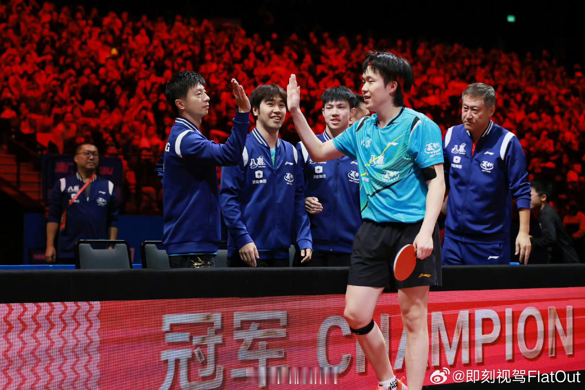 恭喜马龙,恭喜北京队第一盘:黄友政/马龙 3-1 许昕/周恺 第二盘:王楚钦 1