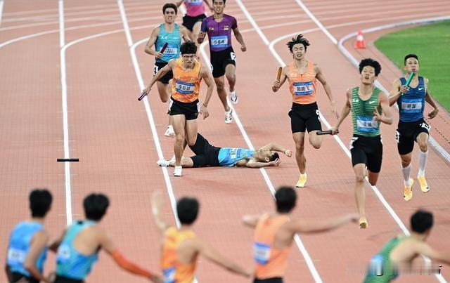 昨晚第十五届全运会田径压轴进行的在男子4×400米接力决赛过程跌宕起伏,先后有四支队伍出现摔倒、掉棒等严重失误,失去了夺牌机会,最终,没有出现失误的四支队伍获得前四名,由胡兴星、李永杰、杨磊、张一品组成的四川队以3分04秒81的成绩夺冠,成功实现卫冕,江苏队和浙江队分获亚军和季军。