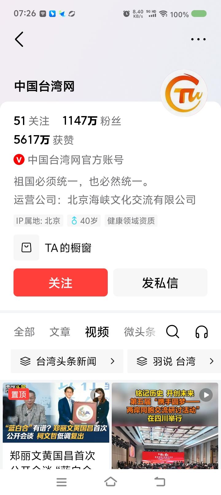 “中国台湾网”是某公司运营的的?—— 网上信息:头条上,中国台湾网由某公司运营。该公司是一个小微企业。 点评: 一、属实么? 二、看名称,以为是某部门进驻头条的。 三、此命名是否恰当?