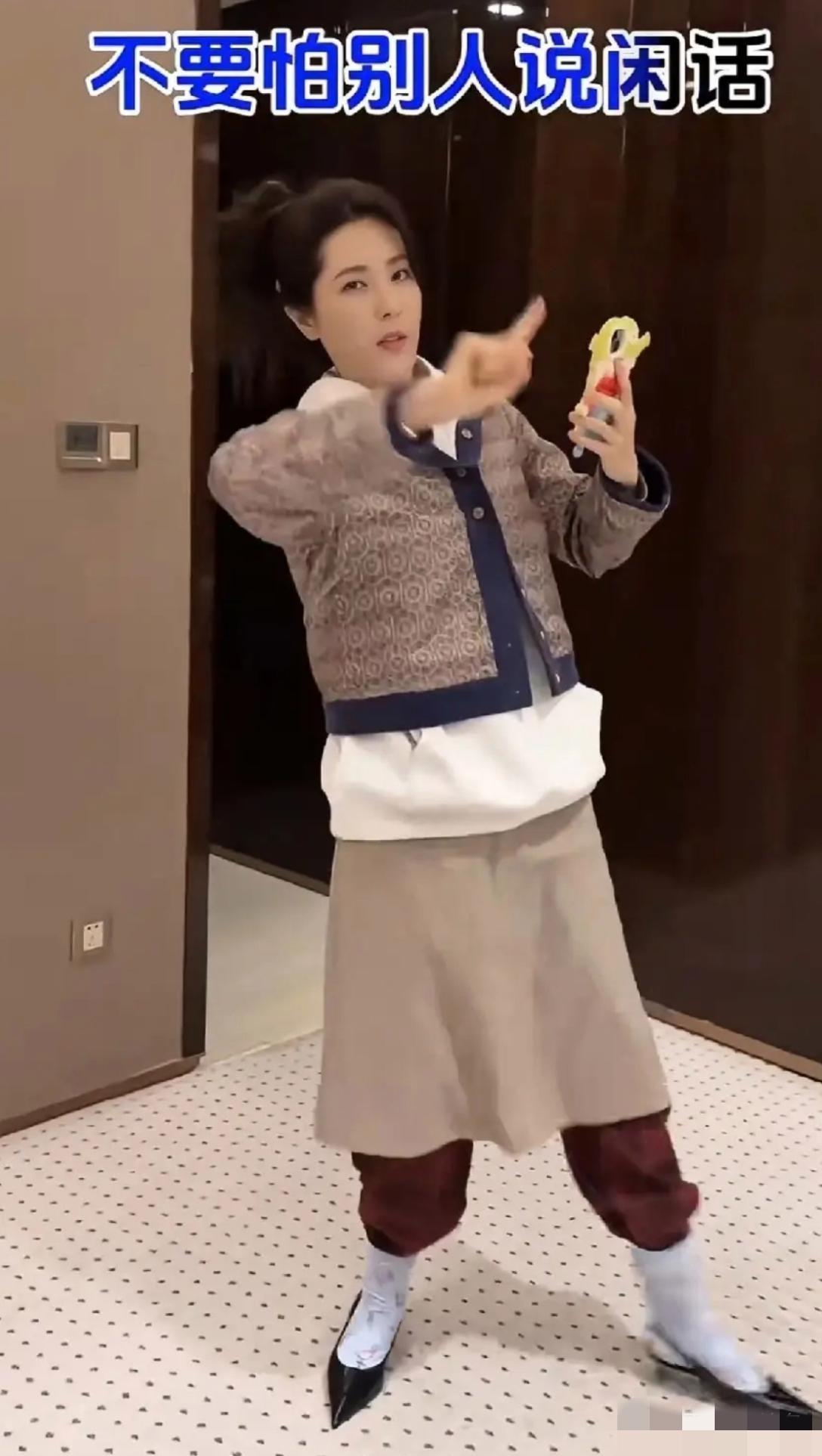 天呐,黎姿的衣着打扮太不敢恭维了:浅色裙子里还穿着酒红色的裤子,长款白衣外还套着短款老气的线衣,居然还搭配了花哨的长袜与尖头鞋子,本来就长脸耷拉眼颜值太一般,穿成这样更是毫无美感,你觉得呢?