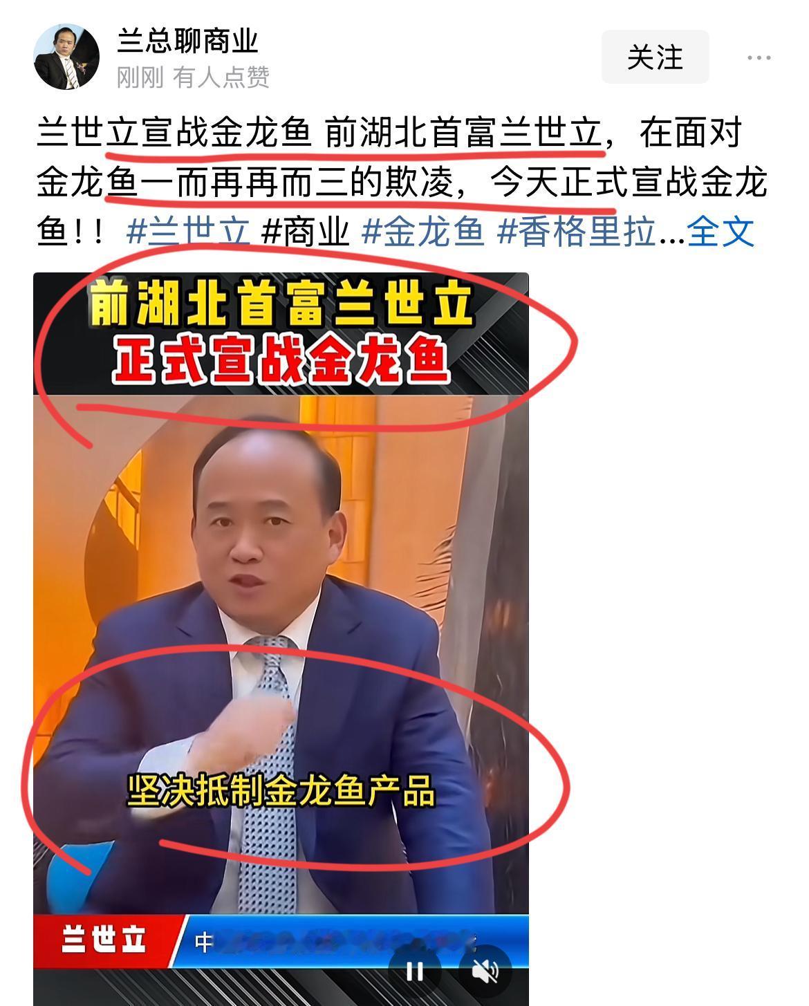 出大事了,湖北前首富兰世立正式宣战著名食用油品牌!! 据说,当年的油罐车事件兰总评论了此事并说这个事情造成某品牌市值损失6500亿,这让食用油巨头坐不住了,立马起诉了兰世立,导致兰总在不知情的情况下,账户被冻结,他当时在海外出差,感觉颜面尽失!! 这次,兰总卷土重来,召开新闻发布会,宣布要正式起诉起诉食用油巨头! 他说,这个巨头太霸道太欺人太甚了,他决定反击,要求他们正式公开道歉! 中间兰总说了很多触目惊心的内幕,主要涉及巨额融资,大家自己去看吧! 最终谁会赢呢,我们就拭目以待吧! 兰总,加油!!