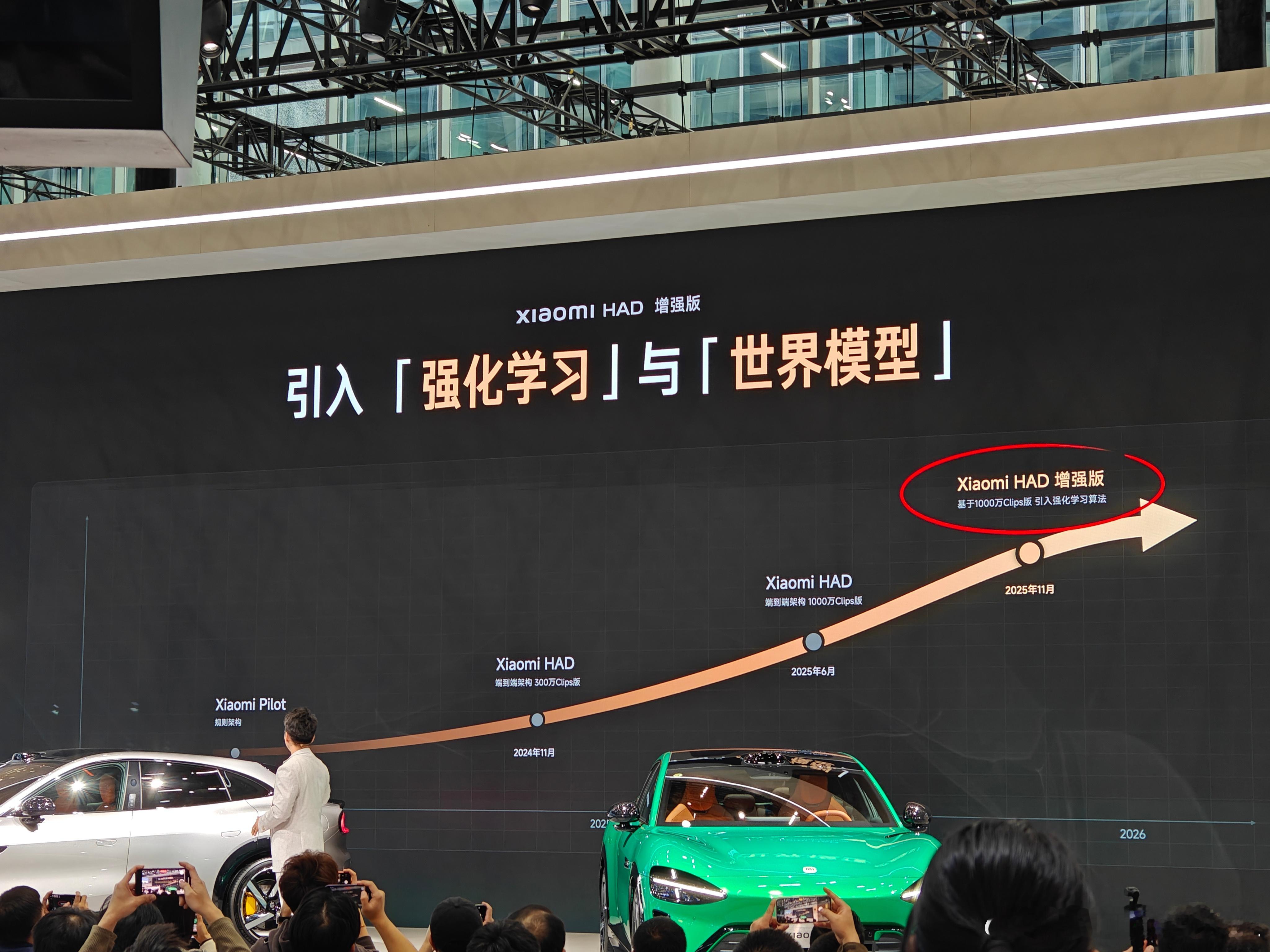 这次小米汽车广州车展发布后雷总没来?主讲人是李肖爽,发布了小米 HAD 增程版,小米 HAD 增强版引入了「强化学习」与「世界模型」,顺便看下图二小米的辅助驾驶进度。但从网络以及部分车主评论来看,小米的辅助驾驶过去一年时间里声量确实不大,HAD 增强版看能不能有些改变。