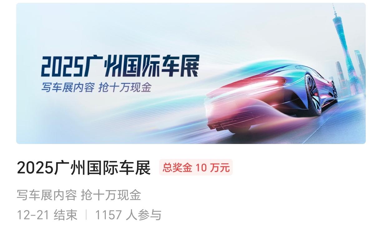 昨天来了两个汽车征文,完成了一个,今天早上起来看见活动广场又来了一个广州车展,还是老规矩,分阶段打卡,每个阶段要求200阅读量,这下有的忙了,互动的友友请支持征文就好,感谢大家。