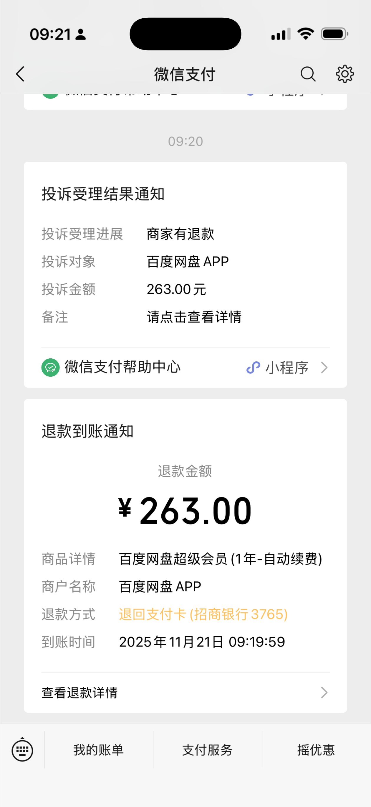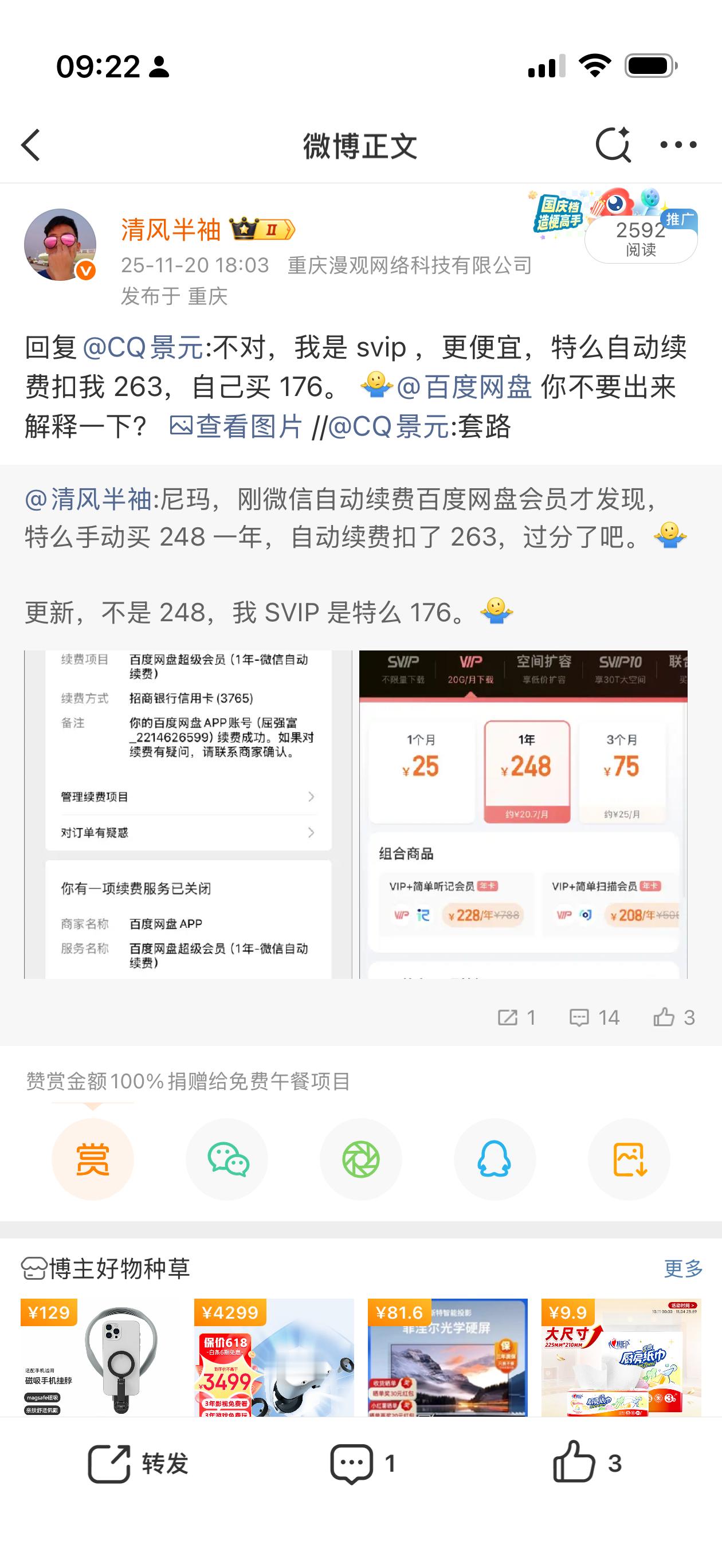 擦,昨晚吐槽百度网盘自动续费当冤大头后续,居然给我退款了,不得不说售后还是可以的哈。我就是在微信支付里面点击反馈提交了截图。好了现在可以重新手动续费了(然后把一堆自动续费都关了)