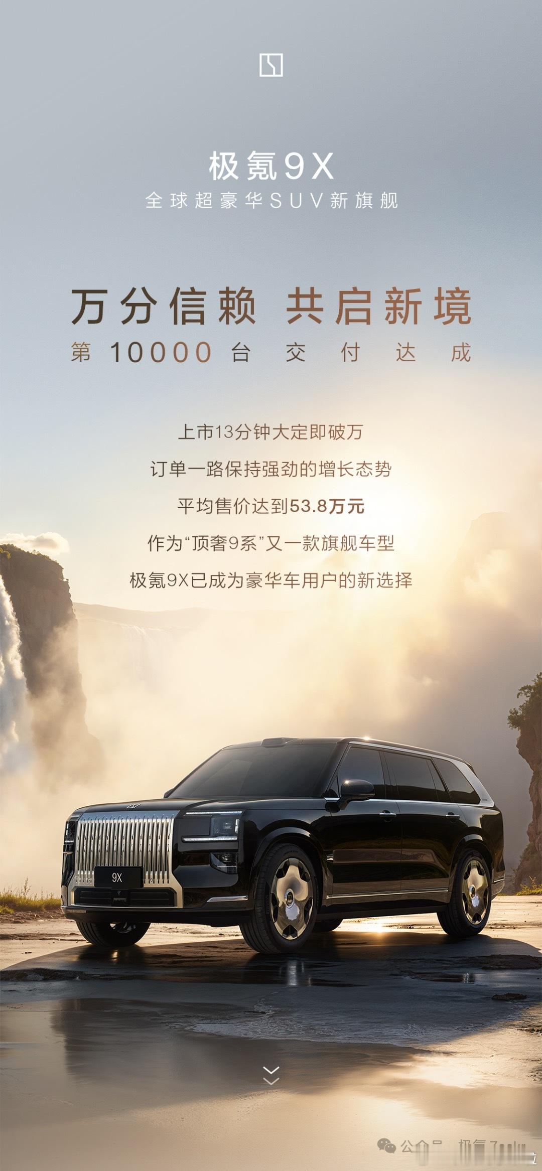 现在的极氪真是低调卖车啊,极氪 9X 累计交付突破 10000 台,成交均价 53.8 万。