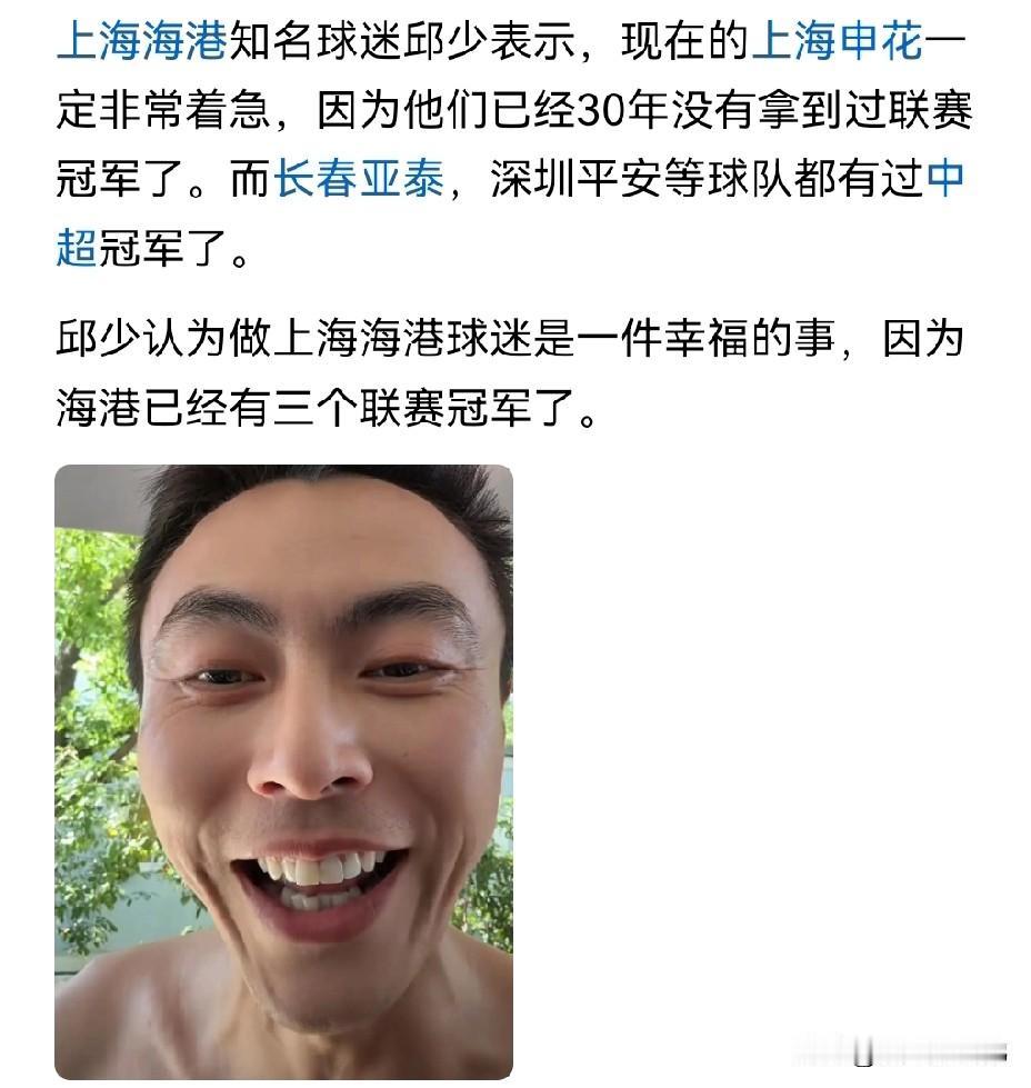 告诫徐江之流:你们这样的“爱”,申花承受不起,别坏了一锅粥! 网络的强大在于能让人露出本来面目,各种魑魅魍魉纷纷冒头。 类似徐江这样的,自诩资深球迷,无比热爱申花,但总爱发表些不靠谱言论。 早些时候称:海港夺冠,就去黄浦江转转。 随后又说泰山赢海港,就答应三件事。 最近又表示最讨厌天津队,甚至程度超过海港。 真不知最后能兑现多少,若食言而肥岂不让自己成笑话? 整个网络,这类人真不少,举着申花铁杆的牌子,到处招摇撞骗。 总是口无遮拦,用“爆料”、承诺等手段吸引流量,究竟图什么? 说白了,这种喜欢是假喜欢,在利用申花扩大自身知名度罢了。 换句话说,就是在消费申花。 言行根本不考虑后果,也不在乎对球队是否造成不良影响。 所谓“爆料”毫无证据,无非是拿捏大家喜欢吃瓜的心态罢了。 倘若真是球迷,把精力集中在技战术分析上岂不更好? 多聊聊球队短板、多给点建议,这才是球迷的本分。 整天说些有的没的,顺便抹黑一下对手有意思吗? 这不妥妥给申花拉仇恨? 难道在徐江之流眼里,申花错失冠军都是别人造成的? 如果是这样,只能说太肤浅,在生活中你们也不会是强者。 凡事多找自身问题才能进步,这道理读小学就教过你们吧? 别总认为竞争对手受照顾,自强不息才是申花的精神。 另外,别说“对方先抹黑,我们是反击”之类的理由,傻不傻? 难道狗咬你一口,你还咬狗一口? 你反击说明跟对方属于一个层次,也正中对方圈套。 不予理睬对方自然偃旗息鼓,越反击对方会越来劲,进入无休止口水仗。 有句话叫“谣言止于智者”。 那个“邱少”也属于这类人,整天管不住自己的嘴巴,是彰显自身能力? 呵呵,不过是消费海港罢了。 奉劝徐江之流,开直播是你们的权利,但管好自己的嘴。 别老口无遮拦,只会拉低申花格局,让大家误以为申花球迷素质怎么这么差。 作为个体,别坏了一锅粥。 你们这样的“爱”,申花承受不起,球队无福消受。 绝大多数球迷是理智的,只不过不太愿意出声而已。 徐江之流愿意做代表很好,但别做小丑。 作为申花球迷很反感你们,把环境搞得乌烟瘴气,有意思吗? 既然是知名球迷,好好珍惜羽毛,听劝。