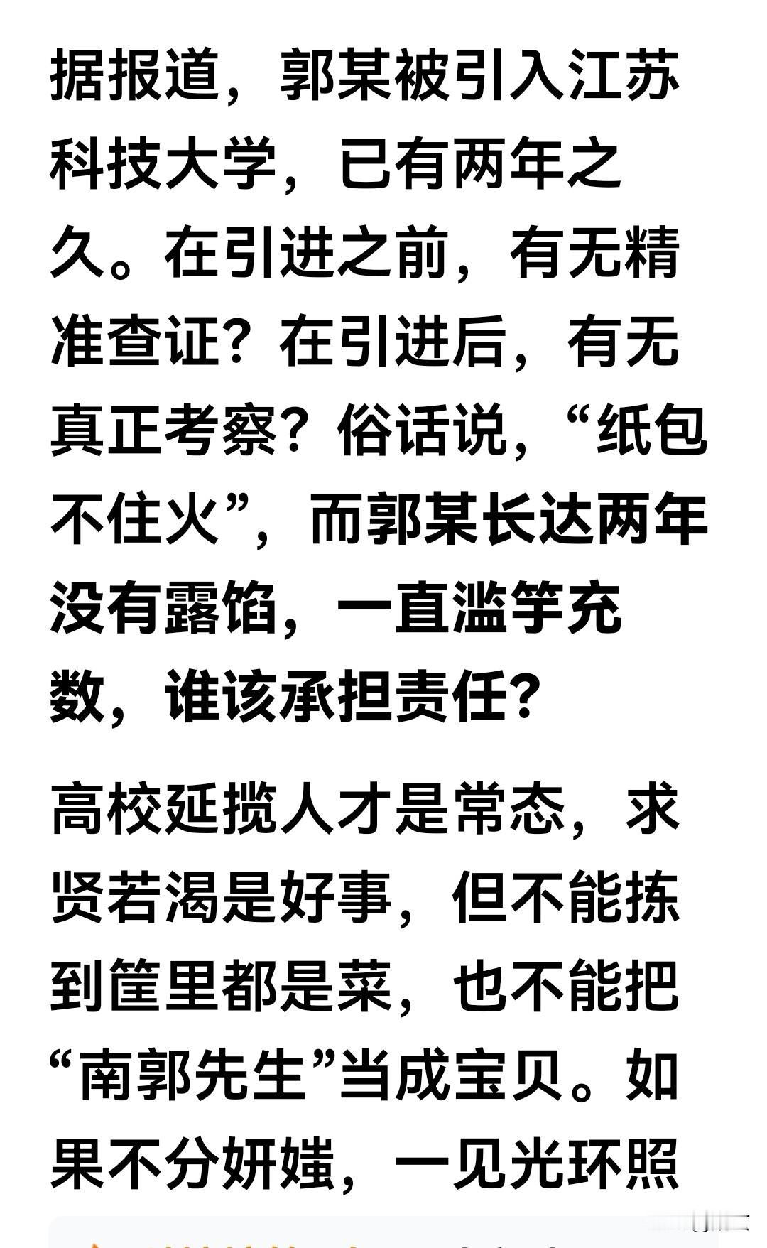 我想问问,这几个博士学生是啥水平,一个高中生教他们两年了,他们发现没? 按理说,博士生和高中生的知识和见解差别太大,现实生活中估计都不屑于交流。 可郭高中硬是教他们两年了,平时传授的啥课程?是讲的小马过河吗?这几个博士生学得津津有味吗? 郭高中当然是骗子了,可这几个博士生如果学得津津有味,那博士生的水平就很可笑了。 当然,如果是他们发现了端倪,惧于权势不敢说,就另当别论了。