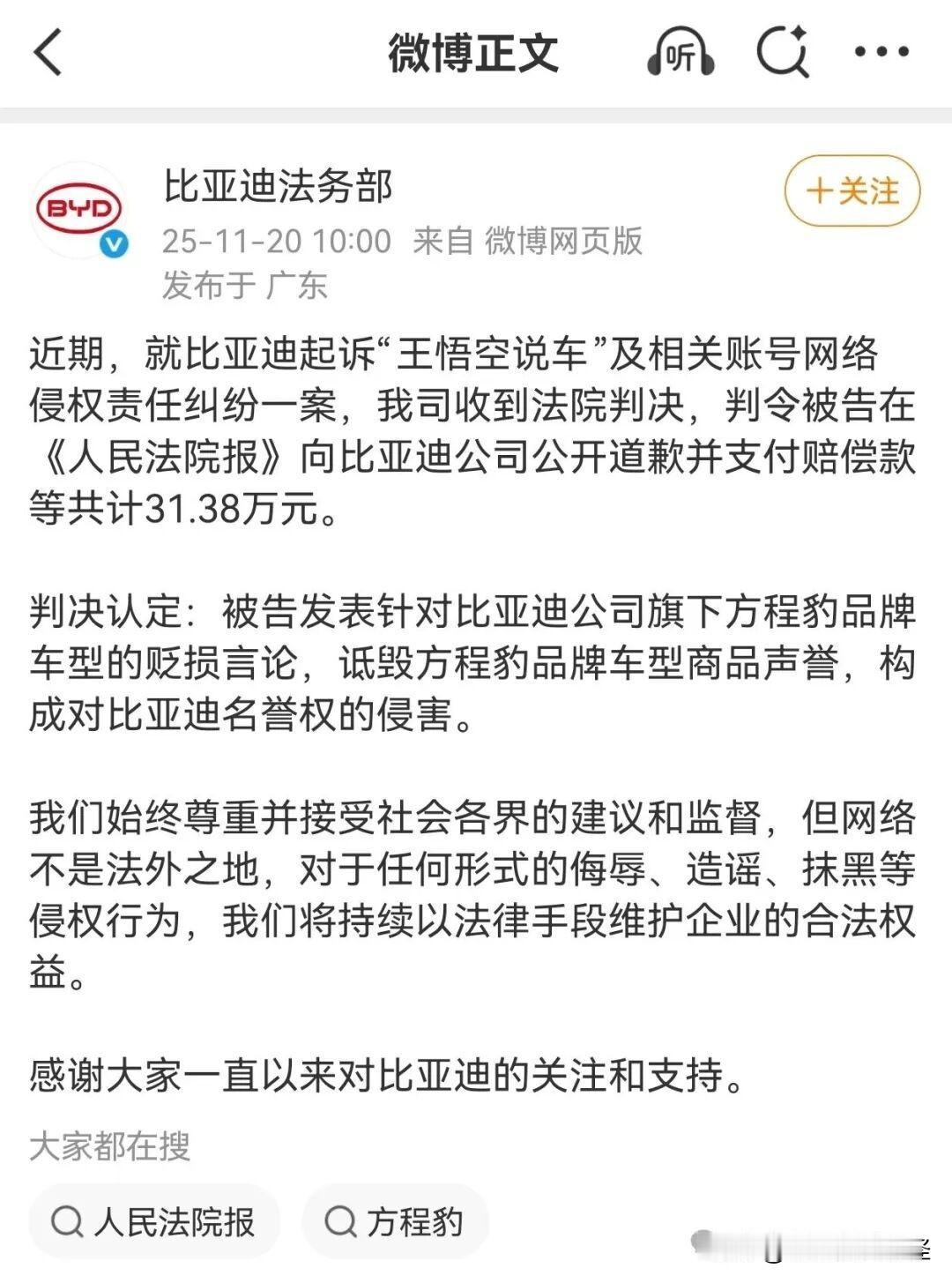 还记得曾经方程豹上市的时候那几个叫嚣的最厉害的天团成员吗? 猴妖猪扳手今何在? 猪罚了200万老怪都觉得太便宜他了。 没想到这个黑方程豹最厉害的猴子,竟然才罚31万! 想当年我们的小豹豹刚从强保里出生的时候,就被他们各种诋毁,什么豹裆石事件就是方程豹上市前夕这个猴子搞出来的。后来为了黑方程豹,还专门去买了一台来各种摆拍诋毁,无所不用其极。 如今虽然是给他判了,但是仅仅一台曾经的领航版豹5的价格,真的让老怪心寒,这个犯罪成本太低了! 要知道,就猴子这些年干的事,仅仅对方程豹的销量影响最起码都得是数以万计了,这个直接影响就是上亿的利润。再加上对品牌声誉的伤害,要知道方程豹曾经定位于腾势于仰望之间,后来实在是无奈才自家身价。品牌收到如此大的伤害,这个猴子功不可没。 而且,这个猴子干这种事,是自发的吗?肯定不是啊! 方程豹品牌受损,销量受损,谁得利?肯定是猴子背后的金主啊! 对于一个车企来说,31万的罚款算得了什么?简直就好比,如果老怪养了条狗,让它天天黑我的竞争对手,说别人做的改装件很拉跨,让他的产品销量大跌卖不出去,造成了他上百万的经济损失。然后对手收集好各种证据,花了九牛二虎之力,请律师,去法院里告我的狗。最后对手赢了,判罚是让我的狗给他赔礼道歉,然后罚款二百! 对于我来说,一条狗和二百块的罚款,简直是不痛不痒啊。 你说这种事,我以后还干不干?成本很低,利润很高,为什么不干呢? 所以把,打狗还得看主人对吧?净化车圈行业生态 对于这种富豪家的狗,不狠狠的揍它,罚它,它的主人是不会长记性的!