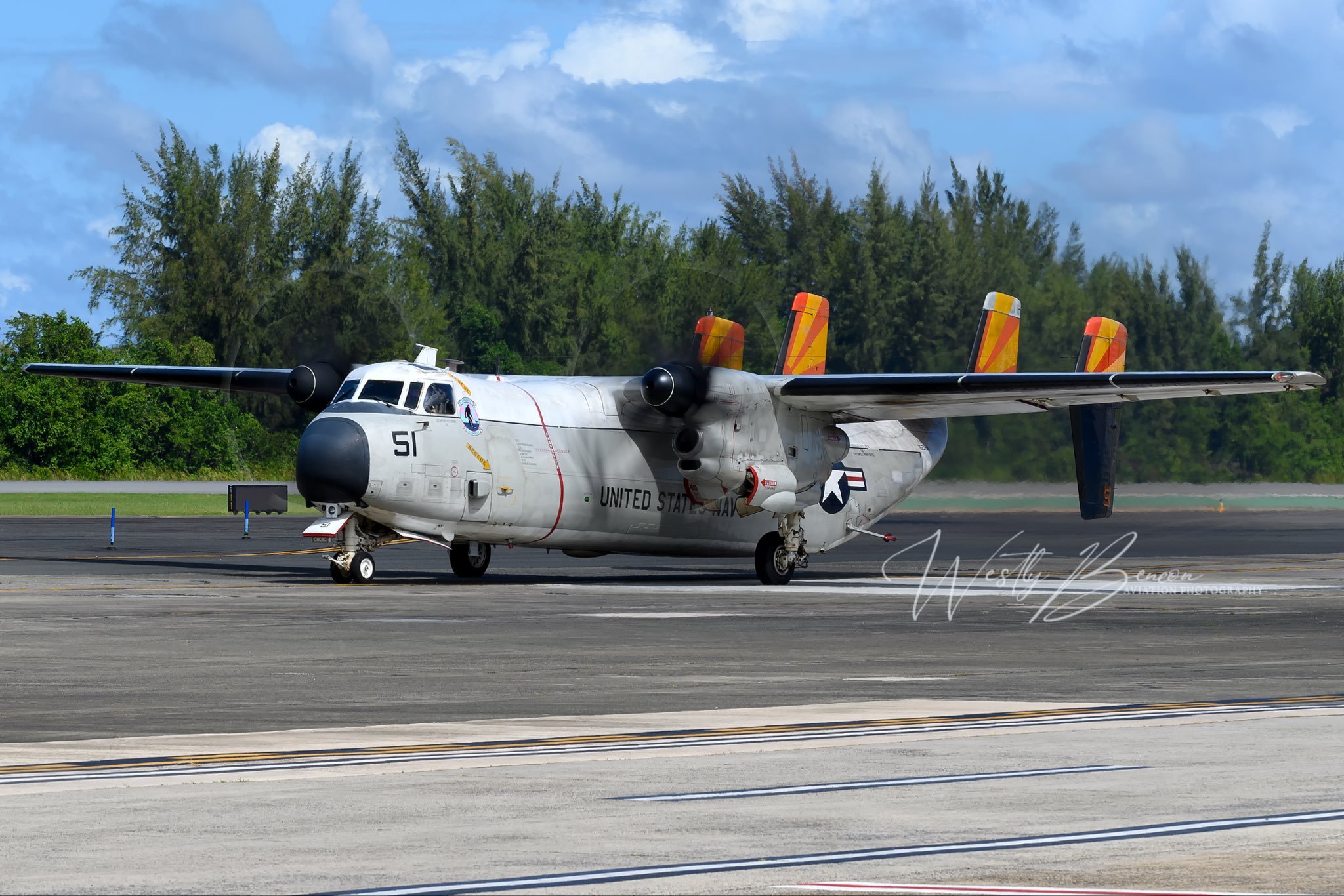 C-2 “灰狗”运输机,是美国一型双发后掠翼涡桨式舰载运输机。C-2 运输机由美国格鲁曼公司研制,是在 E-2 “鹰眼式” 空中预警机的基础上研制而成,用以取代由活塞引擎推动的 C-1 运输机。首两架由 E-2 改装而成的原型机(美国军方编号 “YC-2A”)于 1964 年试飞成功,1966 年服役。1984 年,美国军方批出生产合约,生产 39 架新型号的 C-2A 型运输机,以取代较旧的机体。所有老旧的 C-2 在 1987 年被淘汰,而最后一批新机型于 1990 年交付予美国军方使用。驾驶舱乘员 4 人。高强度货舱装有与地板平齐的滑轨,可选择装载 3 个 2.74×2.24 米的大货盘,或 5 个 2.24×1.37 米的中货盘。货舱可载 39 名士兵,或 20 个担架伤员和 4 个医护人员。C-2 运输机在美军的沙漠之盾、沙漠风暴和持久自由等军事行动期间,为航空母舰战斗群提供了重要的后勤支援。2012 年,美国海军开始考虑以 MV-22 “鱼鹰式” 倾转旋翼机取代 C-2 运输机。