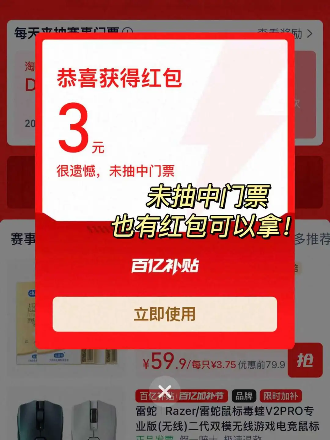 上淘宝百亿补贴 找到大赛活动浮标 点击进入抽奖页面就能立即抽取!