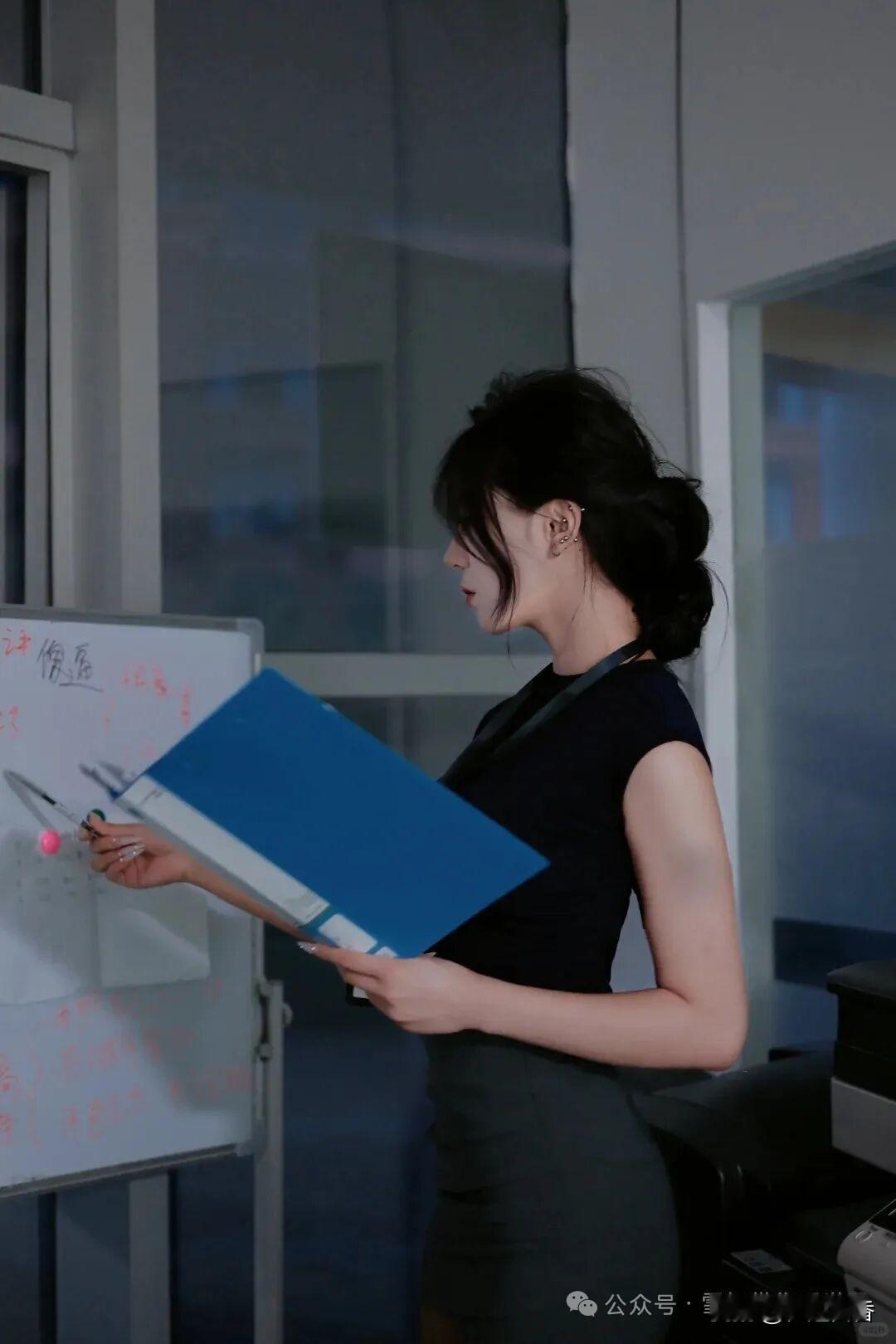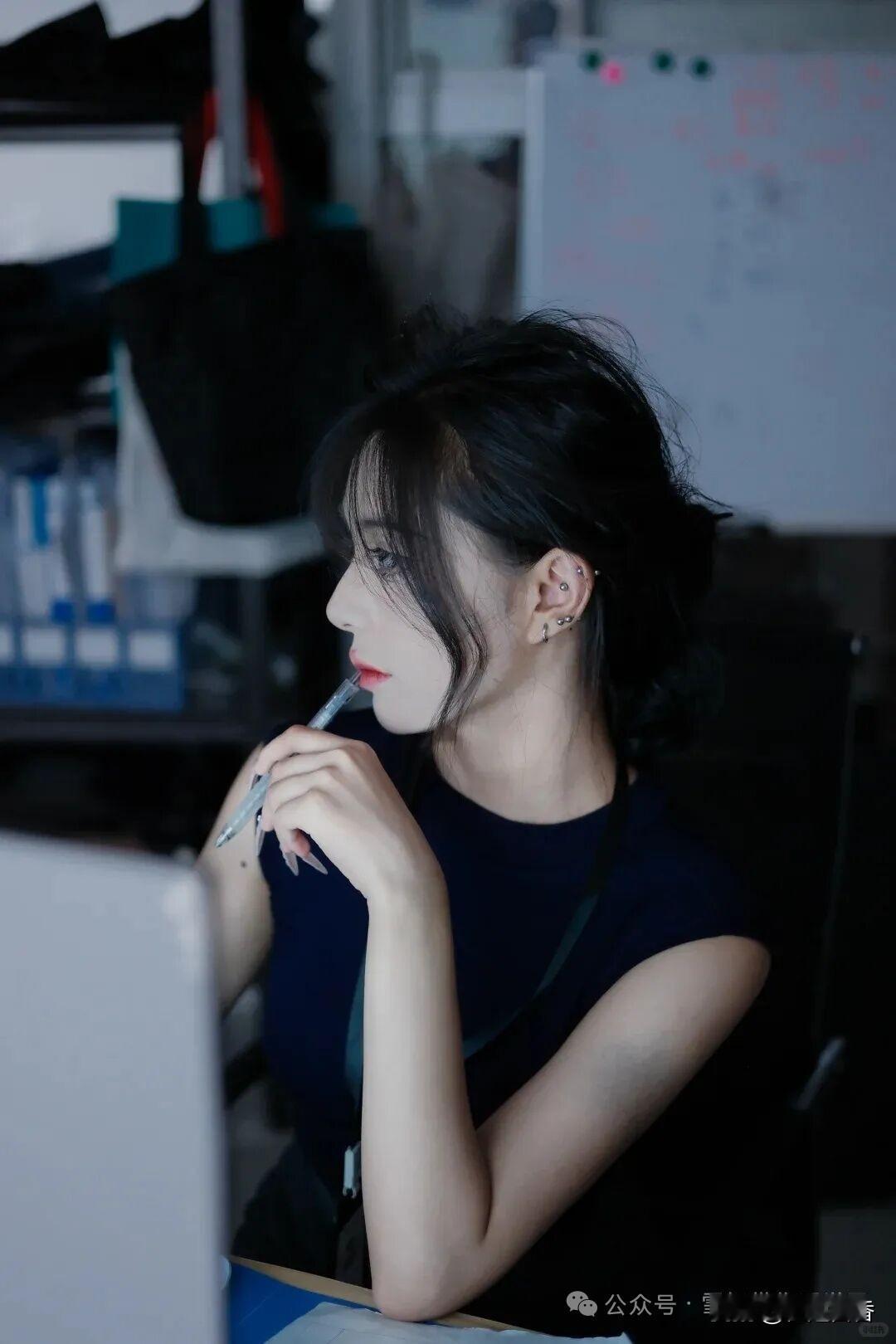 办公室里的优雅女郎,沉思中的美丽瞬间