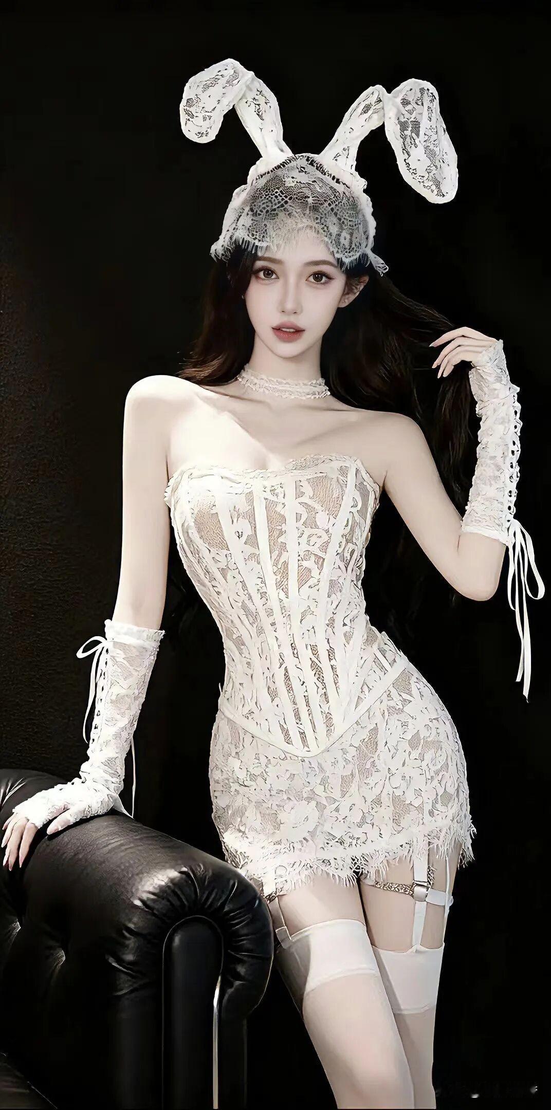 梦幻兔女郎,优雅蕾丝裙,甜美兔耳朵,童话般可爱