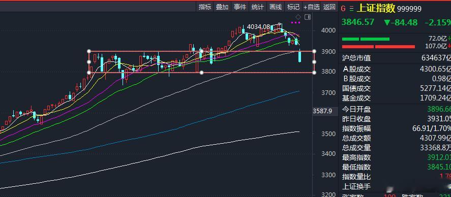 天崩开局,这个时候就是躺平,好点这里就企稳,差点就是往3800点靠一靠,极限也就