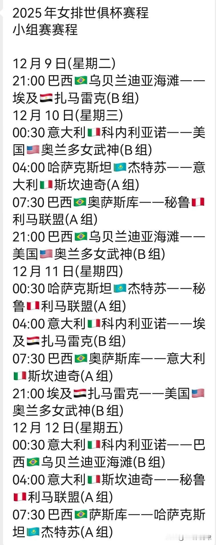 不知不觉,今年世俱杯就要来了! 虽然没有中国俱乐部参与,但是有我喜欢的大婷参与。 目前朱婷已经随队回到河南,然后再从河南奔赴意大利! 恭喜朱婷助力河南女排圆满得完成了本届全运会任务。创造了历史最好成绩! 世俱杯相关赛程看图3! 具体科内赛程我特意罗列出来: 小组赛赛程 12月10日 00:30意大利🇮🇹科内利亚诺——美国🇺🇸奥兰多女武神(B组) 12月11日 04:00意大利🇮🇹科内利亚诺——埃及🇪🇬扎马雷克(B组) 12月12日 00:30意大利🇮🇹科内利亚诺——巴西🇧🇷乌贝兰迪亚海滩(B组) 这时间对于婷迷来说 ,不算太友好,熬夜是必然的! 另外对于美国奥兰多女武神这支球队比较陌生,特意搜索她的资料,没啥知名球员,倒是有一个泰国二传波蓬,估摸实力不怎么强。 至于意甲联赛 11月23日 科内VS佛罗伦萨 大概率朱婷将缺席本场比赛,毕竟朱婷回到科内,也要短暂调整一下。 11月30日 科内VS佩鲁贾 猜测朱婷有可能上场,在参加世俱杯前也要和球队磨合一下。