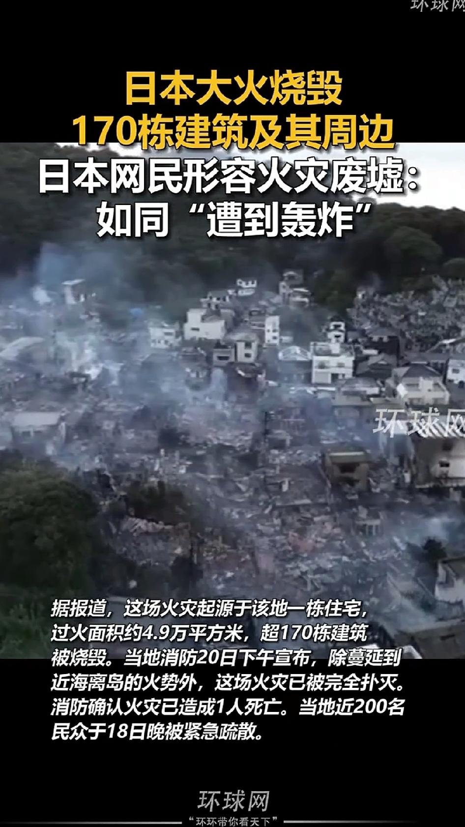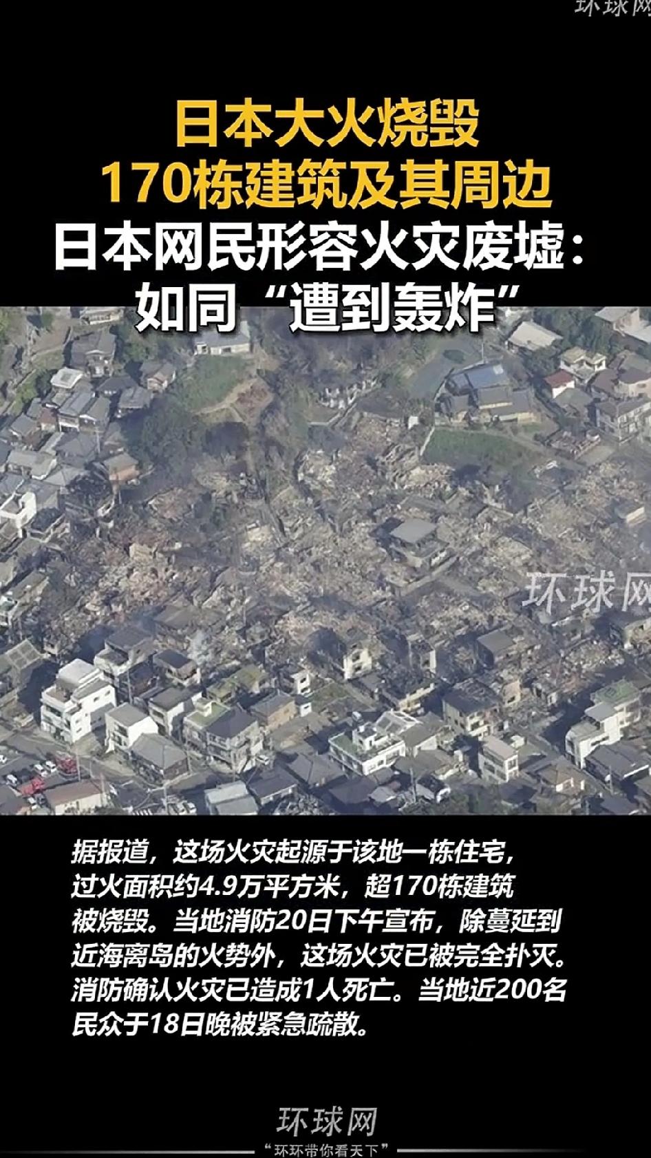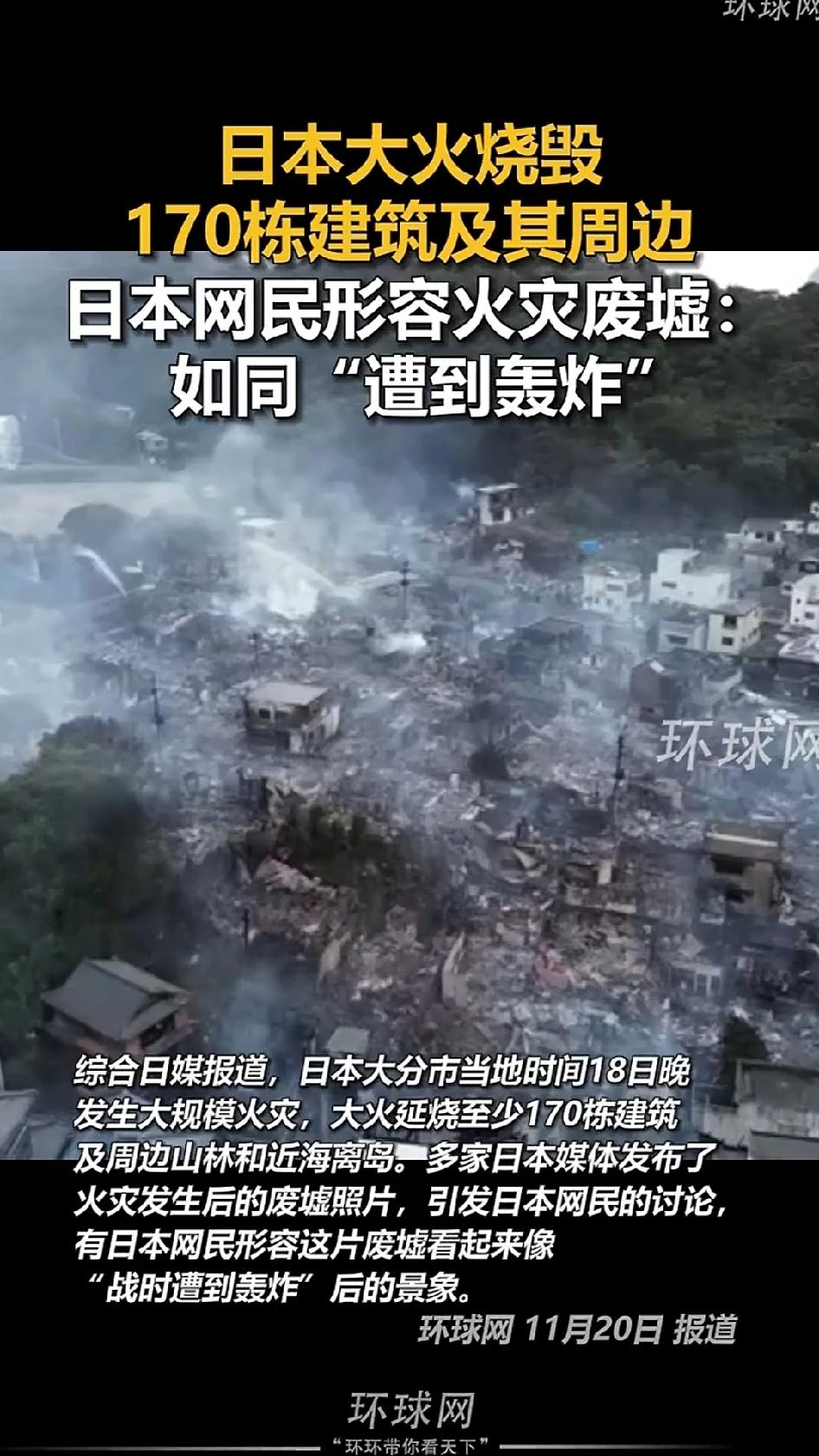 日本大分县发生火灾,火势从一处住宅开始,连续烧了170户人家,当地消防及时介入,疏散近200人,最终还造成一人死亡的悲剧。与此同时,Twitter发生故障,当地网民无法上网。有网民在事后说,当时我以为发生了战争,因为火势大的吓人,又无法上网,真正的战争来临时往往伴随着互联网先瘫痪。 这个日本网民可以说是“惊弓之鸟”了,最近日本女首相高市早苗的言论,引发了与中国的矛盾,让这些爱好和平的日本民众十分担心。 另外, 从这次火灾的一个细节:170栋房屋就只有不到200个人,死亡1人。说明日本真的是人口锐减,而且进入了老龄化社会。 所以,日本要在5年内引进50万印度劳工。而按照印度人的秉性,他们的工作签证到期后绝对不会离开日本,他们会想方设法的留在日本,并且把家人带过来日本,再加上印度人那恐怖的繁殖速度,日本将会成为印度人的日本。 所以,我认为,对日本,我们不必过于紧张,就慢慢的等待着日本的人种被替换,看着他慢慢地自然“亡国”就行。