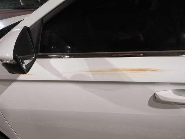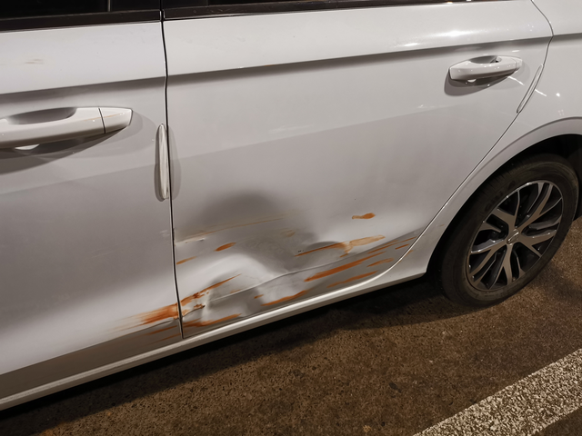 新车一血 新车停路边被人撞了,还肇事逃逸了,人都找不到,不过感觉车皮有点薄啊