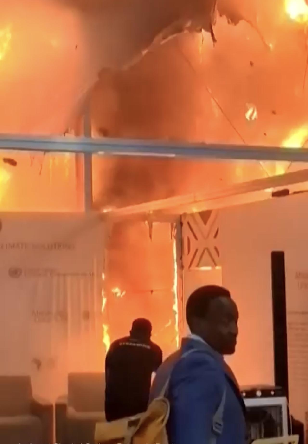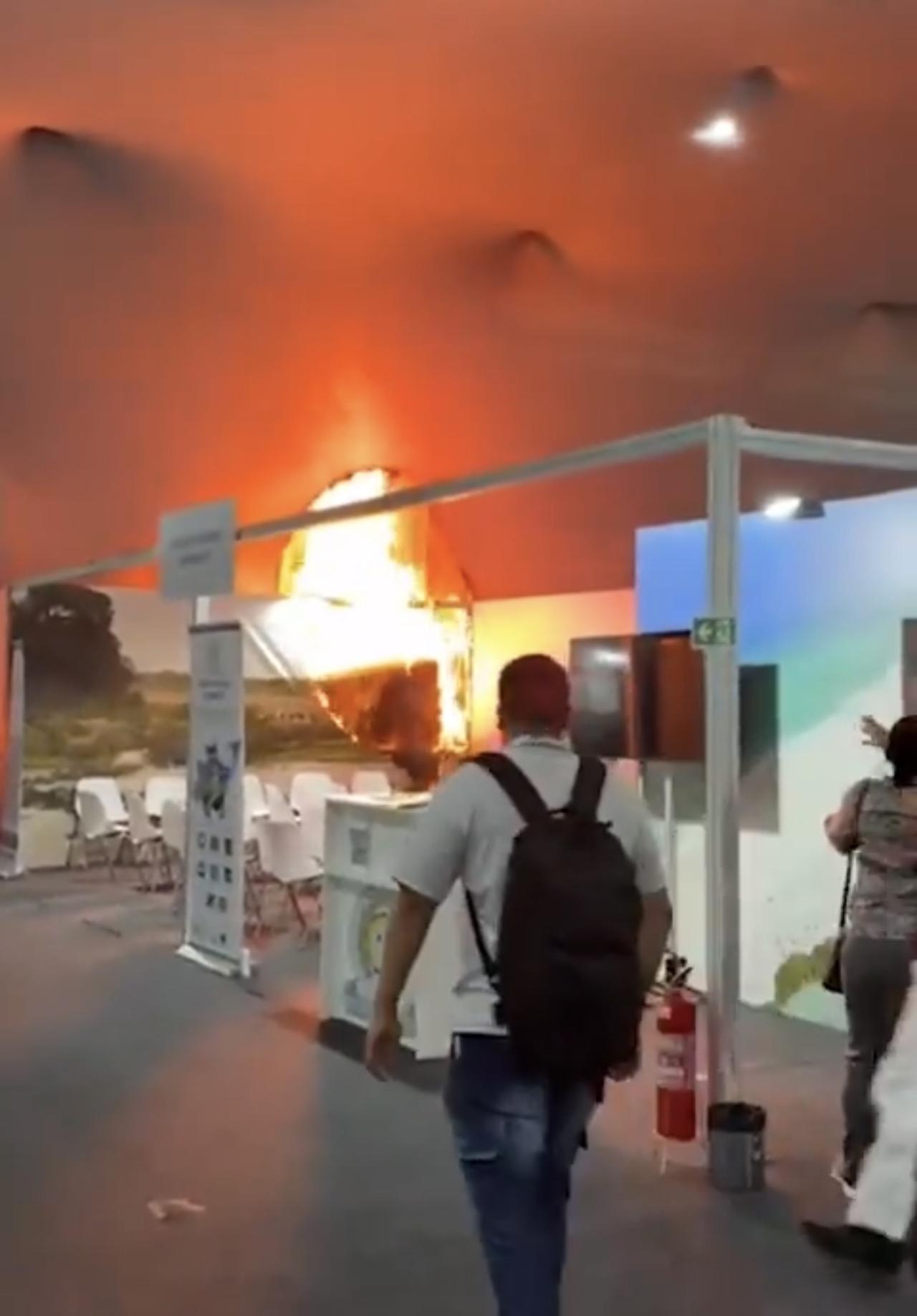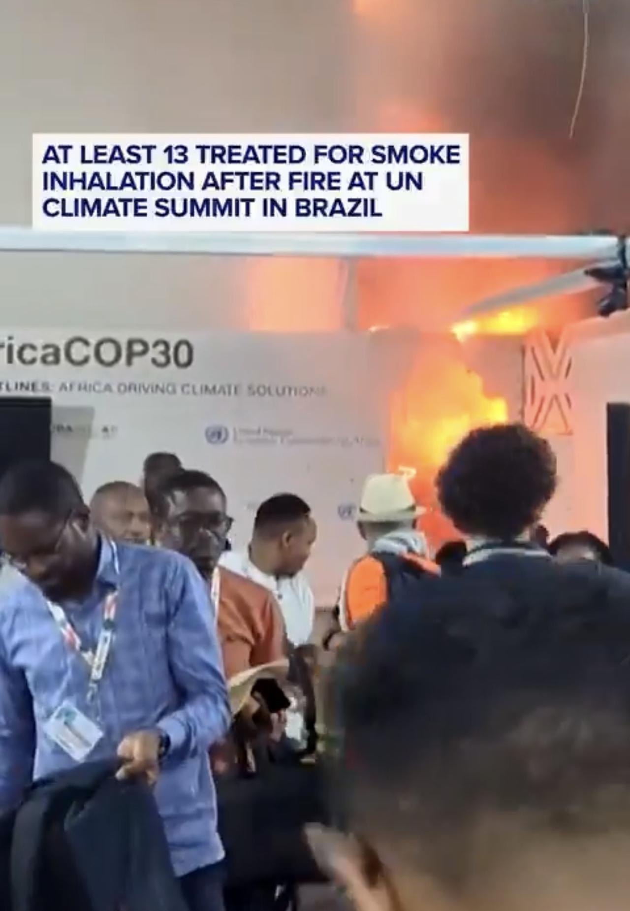 当地时间11月20日,在巴西举办联合国气候谈判的会场发生火灾,消防员迅速赶到现场