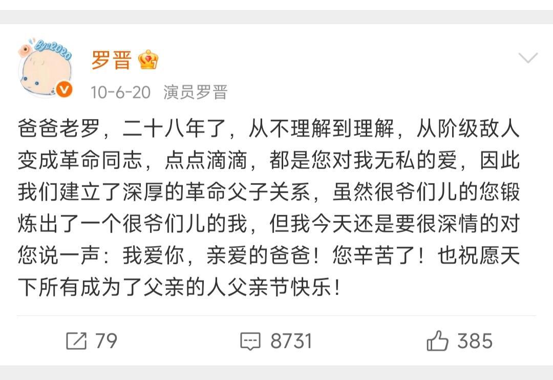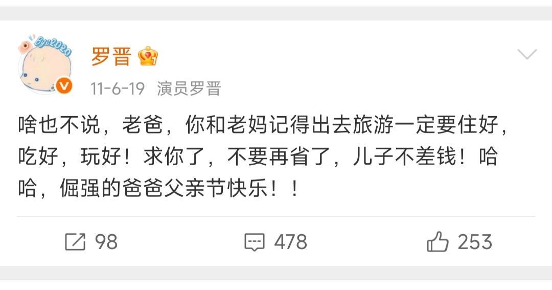 罗晋的微博,记录了很多对爸爸妈妈的爱,父亲的离世真的要崩溃了,这是一个男人最脆弱的时候,希望网友现在能放过他、