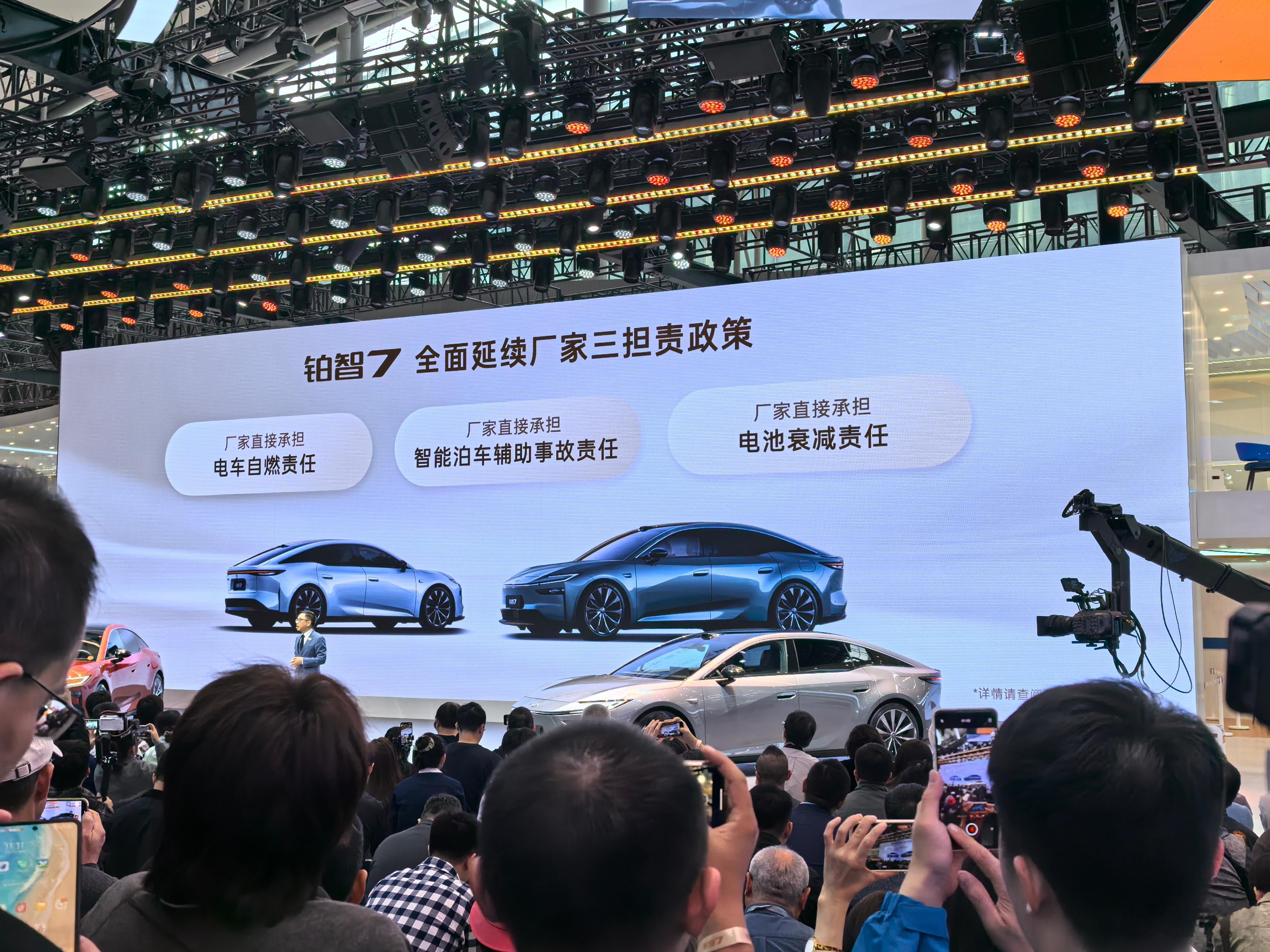 广汽丰田铂智7亮相广州车展,不过这次没发布价格,给大家来个悬念新车搭载Momenta的高阶辅助驾驶系统,采用一体融合式的端到端大模型,支持城市与高速的高阶辅助驾驶。除了鸿蒙座舱动力搭载华为的DriveONE方案,采用88.13度电池包,CLTC续航达到710km,其中单电机版207kW功率,双电机四驱版零百5.1秒。