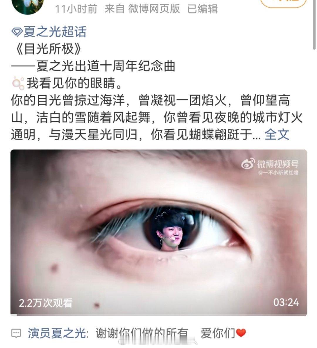 恭喜这个夏之光出道十周年快乐,就这样和粉丝双向奔赴,也希望以后的日子所有人都可以越来越好