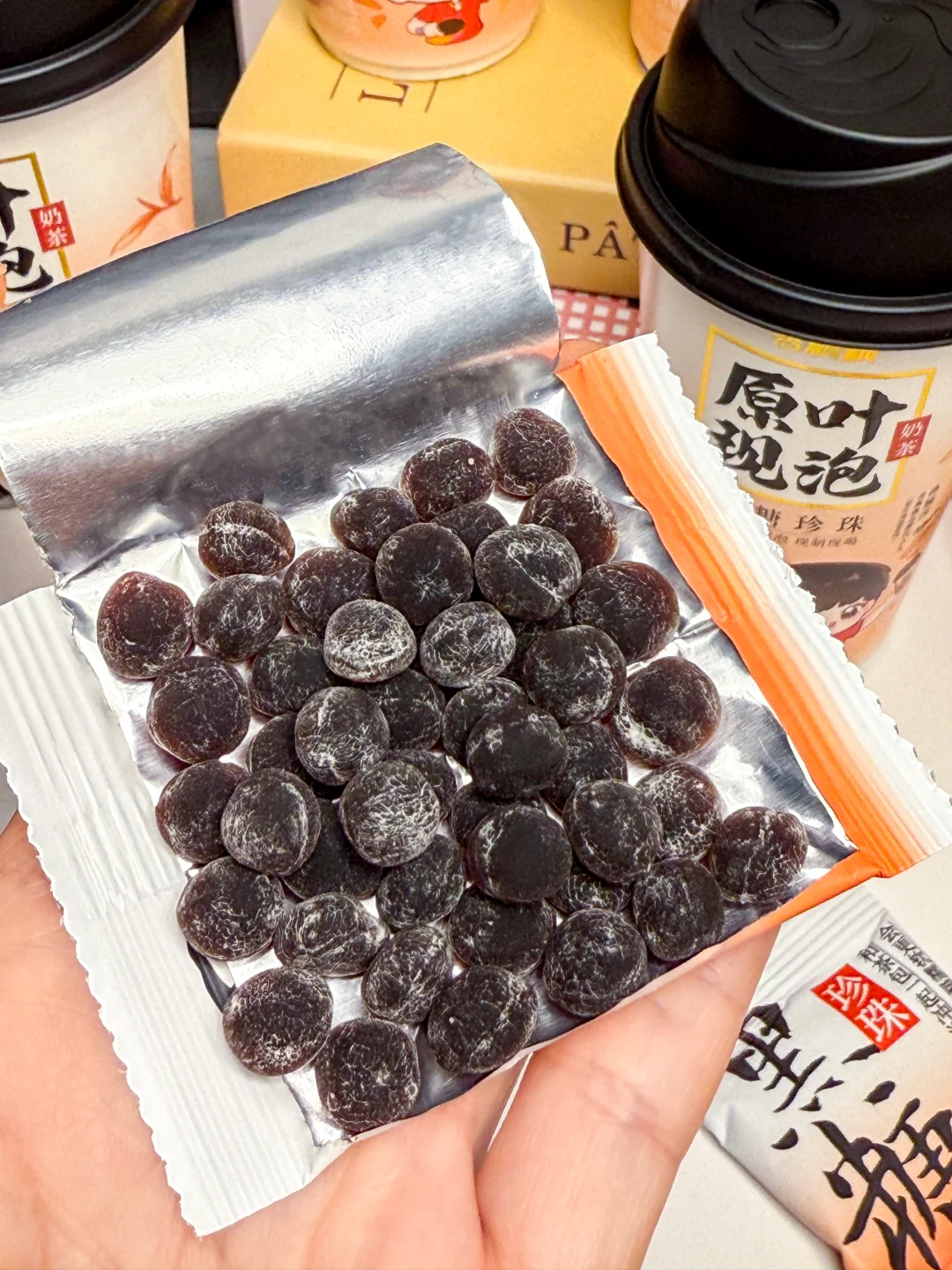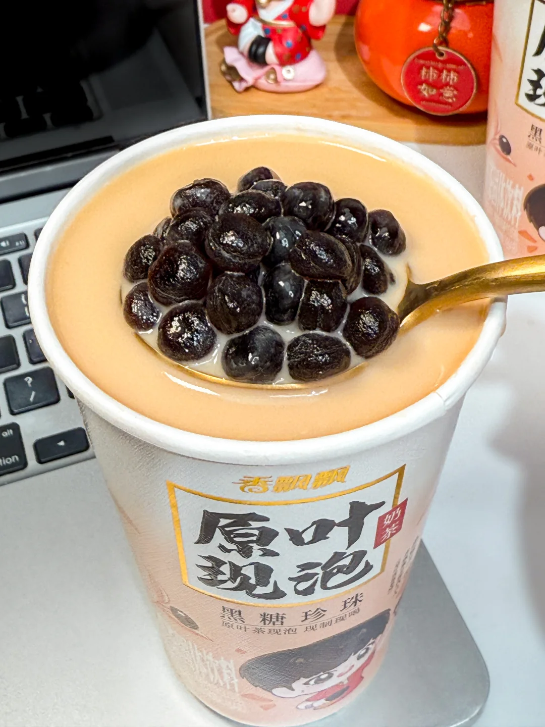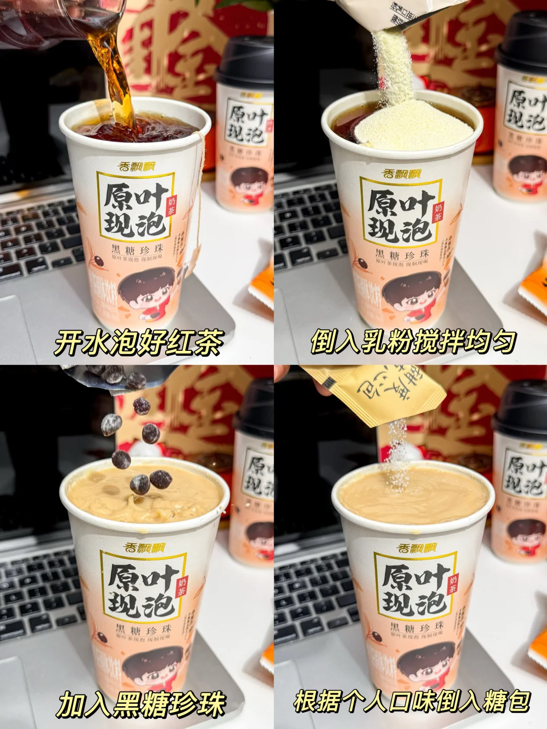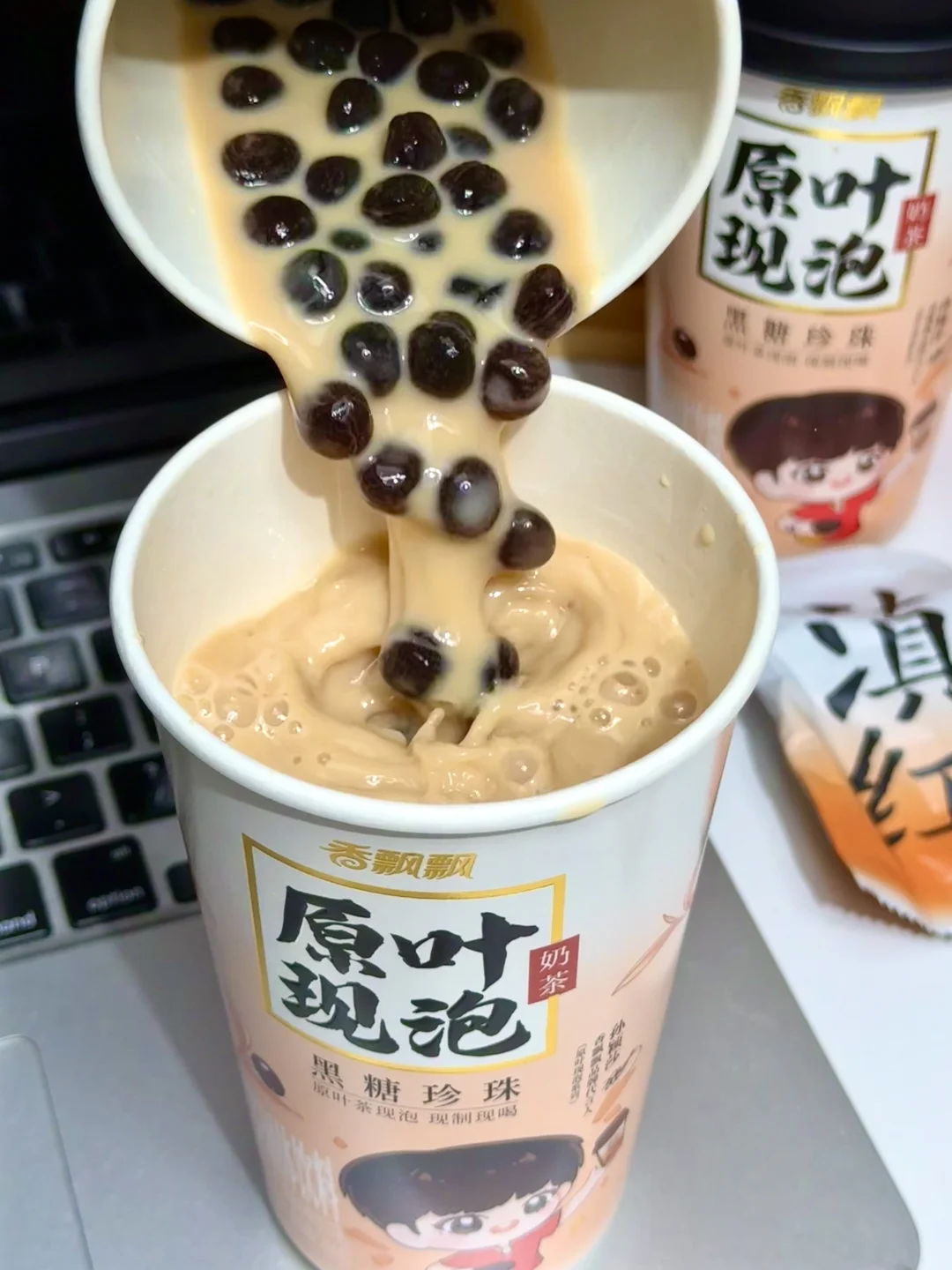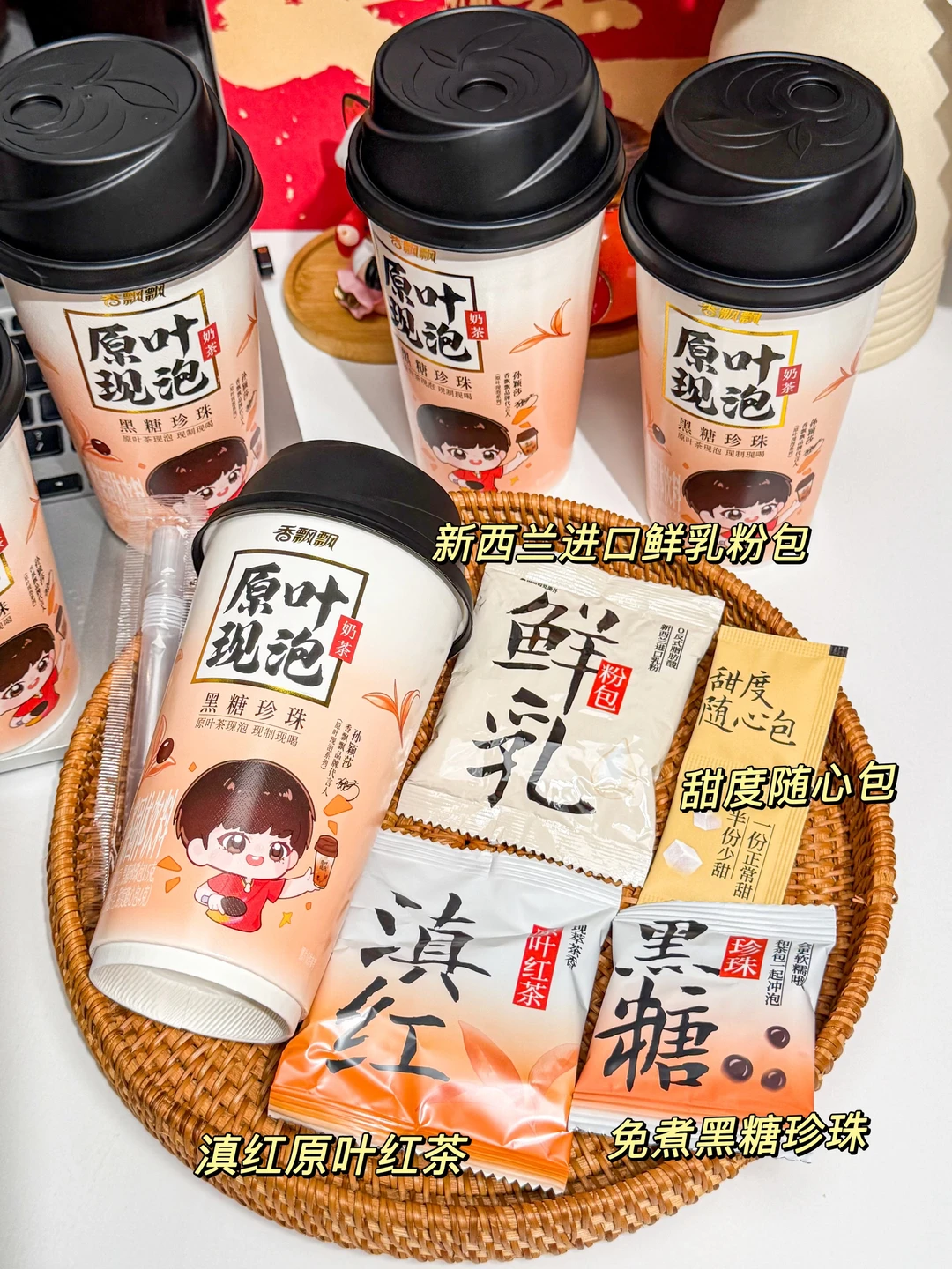 是谁还没有拥有莎莎同款 香飘飘黑糖珍珠奶茶! 我们寝室喝了一次全都爱上了! 几分钟搞定一杯热乎乎的黑糖珍珠奶茶 再也不用苦等外卖!😭 重点味道跟奶茶店没差,还可以随时随地喝上 原叶茶包一泡,就闻到浓郁的滇红茶香!入口好舒服~ 新西兰进口乳粉又香又浓,丝滑醇厚 还是0反式脂肪酸,完全没负担! 再加上QQ弹弹的黑糖珍珠,嚼嚼嚼,浓郁的黑糖味好吃疯了! (珍珠提前用热水泡一泡,会更大更弹!) 超喜欢甜度随心包,三分糖、五分糖…想喝多甜放多甜! 6r就能拥有的快乐!爱喝奶茶的姐妹们冲!