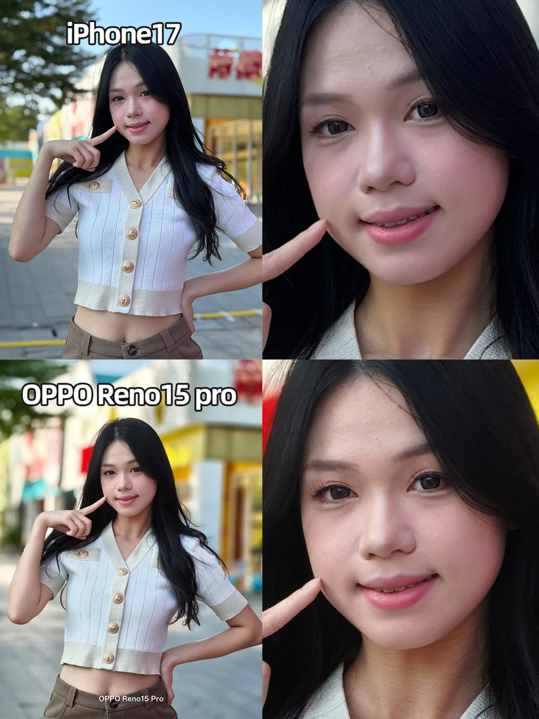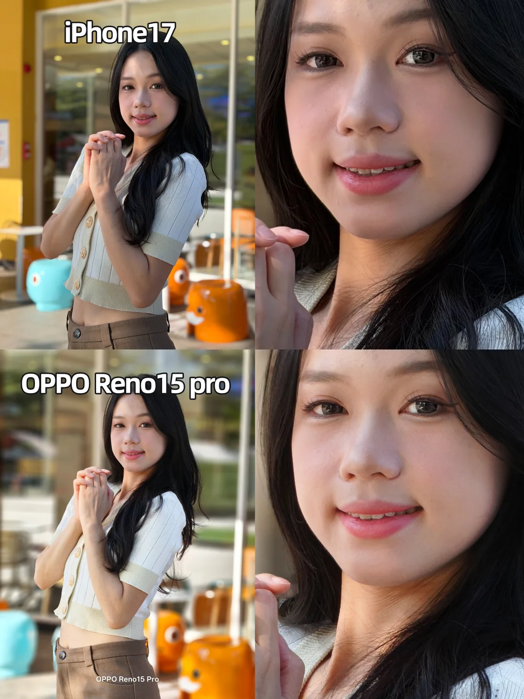你们有没有发现, iPhone 17有了珠光模式后,🤔拍照越来越好了 起码对比之前,可玩性更高了。 但是人像方面国产机相比,还有差距吗? 来看看iPhone 17和OPPO Reno15 Pro的人像就知道了! - 🤪感觉iPhone 17有点保守,不敢给多少美颜, 肤色还得后期一下~ - 😌而Reno15 Pro直出属于一眼好的那种吧, 但不会有过度美颜~ 光线适中没有过度提亮,肤色自然, 质感比较不错…… - 那么,你更喜欢谁的人像拍照呢?