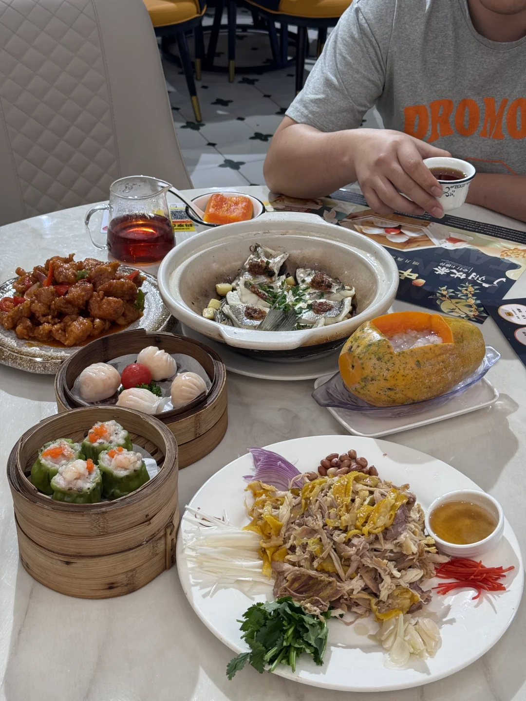 去江高饮个茶,爱惨了! 正文: 今天中午来江高吃午饭啦~~ 哇哦 👏 我真是来对了 😧这店太适合我了吧 价格实惠且服务态度不错 看到很多阿公阿婆也在吃午餐 我也放心点了个吃得能扶墙走的餐 人均50+就够啦!性价比贼高~ 哇!煎鱼真的好靓👍哦 鱼肉好鲜嫩呀~~~没有一点腥味! 虾饺更是bi点!虾肉紧实~ 不负众望成为了zui❤️ 店名:叹茶靓点·粤式餐厅·全天茶市(江高商业街店) 地址:夏花三路广东省广州市江高商业步行街A区(肯德基旁边)
