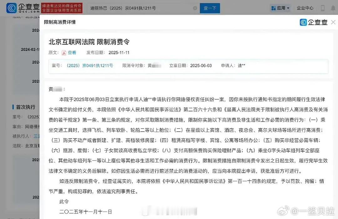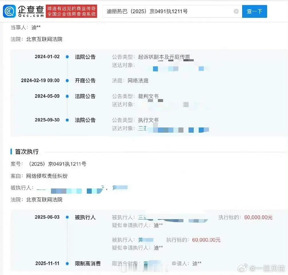 迪丽热巴持续告黑中小黑子被强制执行6万且限消