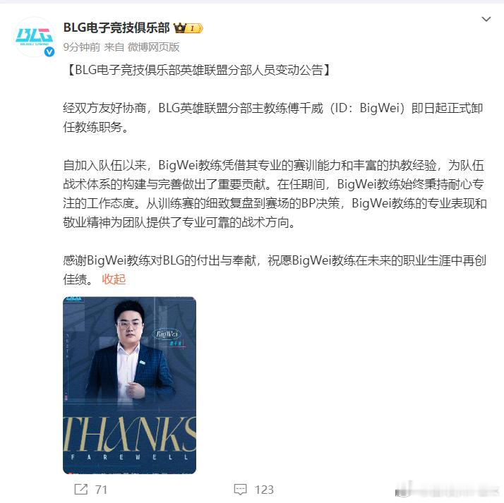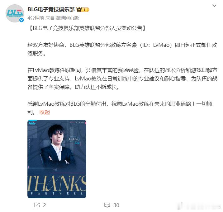 BLG官宣Bigwei和Lvmao离队,现在赛训和老板就是在争取Daeny了,看看丹尼会选择哪里吧。