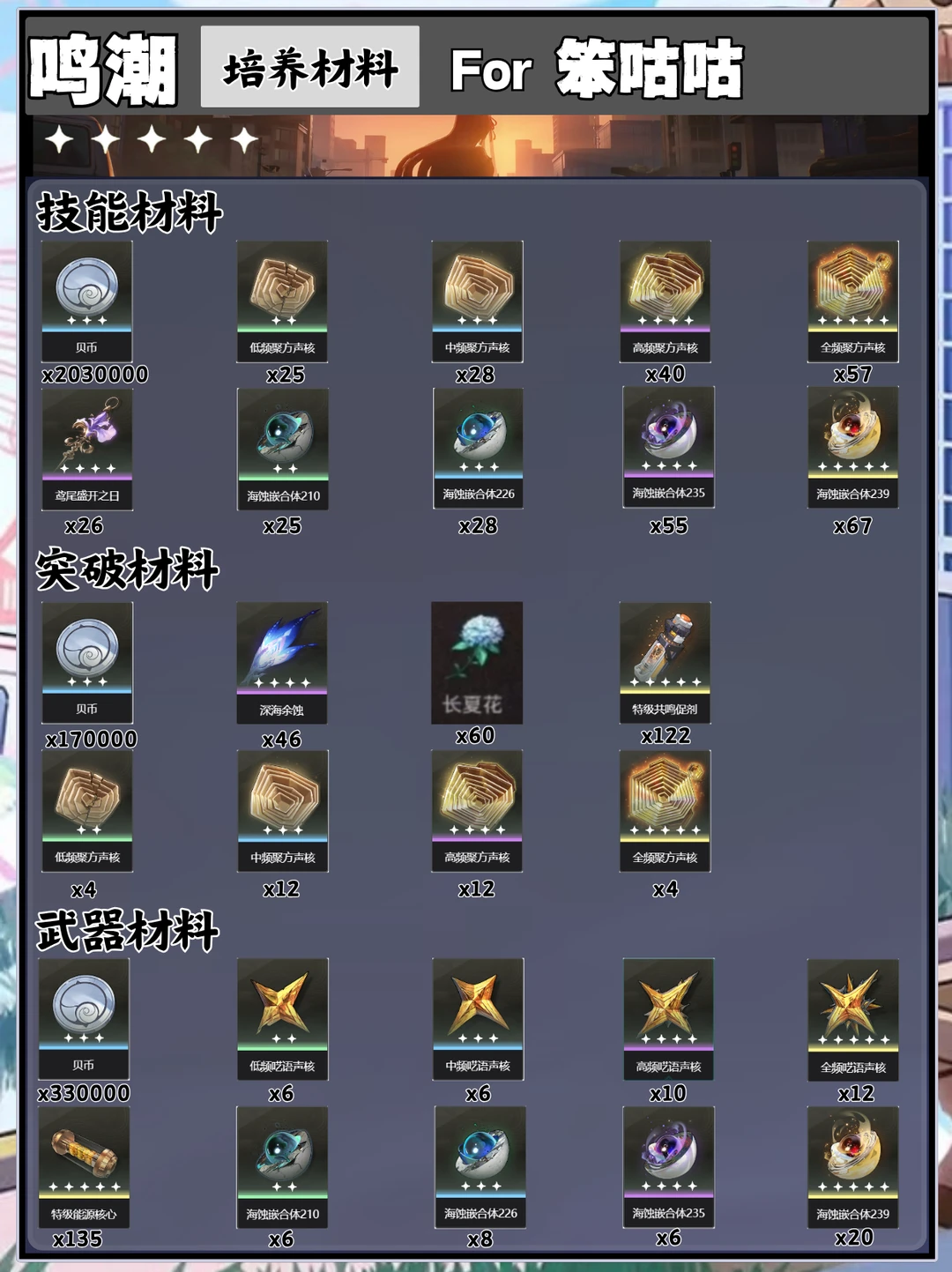 (内容制作数据相关参考鸣潮wiki,有错误引导,欢迎大家指教批评,笨某一定虚心接受!!)