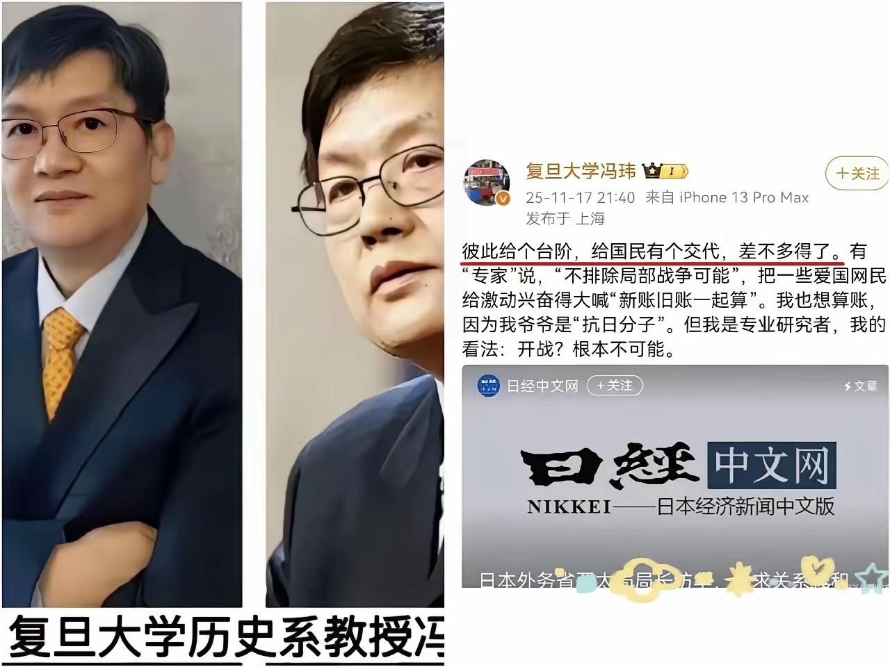这越有知识的人怎么回事,明明是别人在你门口指手画脚,你却说了一声“差不多得了”,直接是把网友惹毛了。 这是一位复旦教授所能够讲述的话语吗?拿着国家的钱,到头来说的话却是受害者给加盖者下台阶。到底是谁得罪了谁? 不要小看日本,他们随时随地都会发起战争,当年的珍珠港就是一个很好的例子,美国也并没有把日本当回事,认为日本就是不敢,却没想到,日本的太平洋舰队直接是全军覆没,这不是小事,防人之心不可无。 谨慎才是第一位。 这位教授的发文中,实在是令人反感,不知道大家看到这位冯教授怎么看