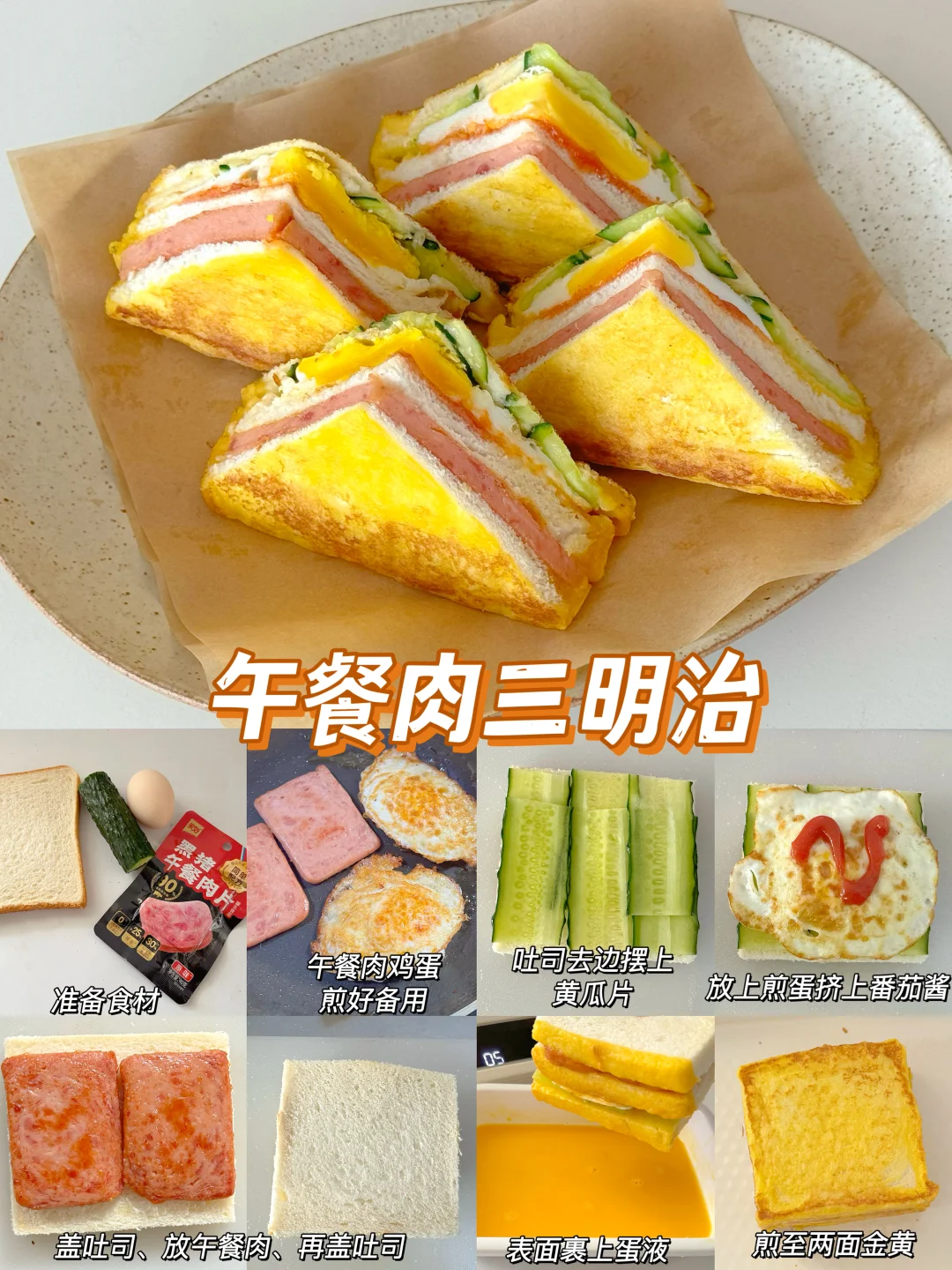 🌈还在为宝宝早餐吃什么发愁吗?试试这几款营养早餐吧,做法简单,美味可口,饭渣宝宝也会爱上吃饭哦 ✅黑猪午餐肉三明治 ✅黑猪午餐肉蛋包三明治 ✅香蕉吐司卷 ✅黑猪午餐肉饭团 ✅奶香小排包 ✅黑猪午餐肉蔬菜煎饼盒 - 详细做法可以参考图片哦 - 给小朋友做早餐,午餐肉用的是我家经常囤的🥩美好黑猪午餐肉片~这款跟别家很不一样,用的全是营养价值更高的黑猪(含量也是超过了90%),肉眼可见的大块肉粒,吃起来也是扎实极了~配料表也是真干净,没有乱七八糟的添加剂。敲重点,是减盐的配方,小朋友直接吃能当零食,煎了更美味🤤。用它我可以做一百种早餐美食,真的超棒!
