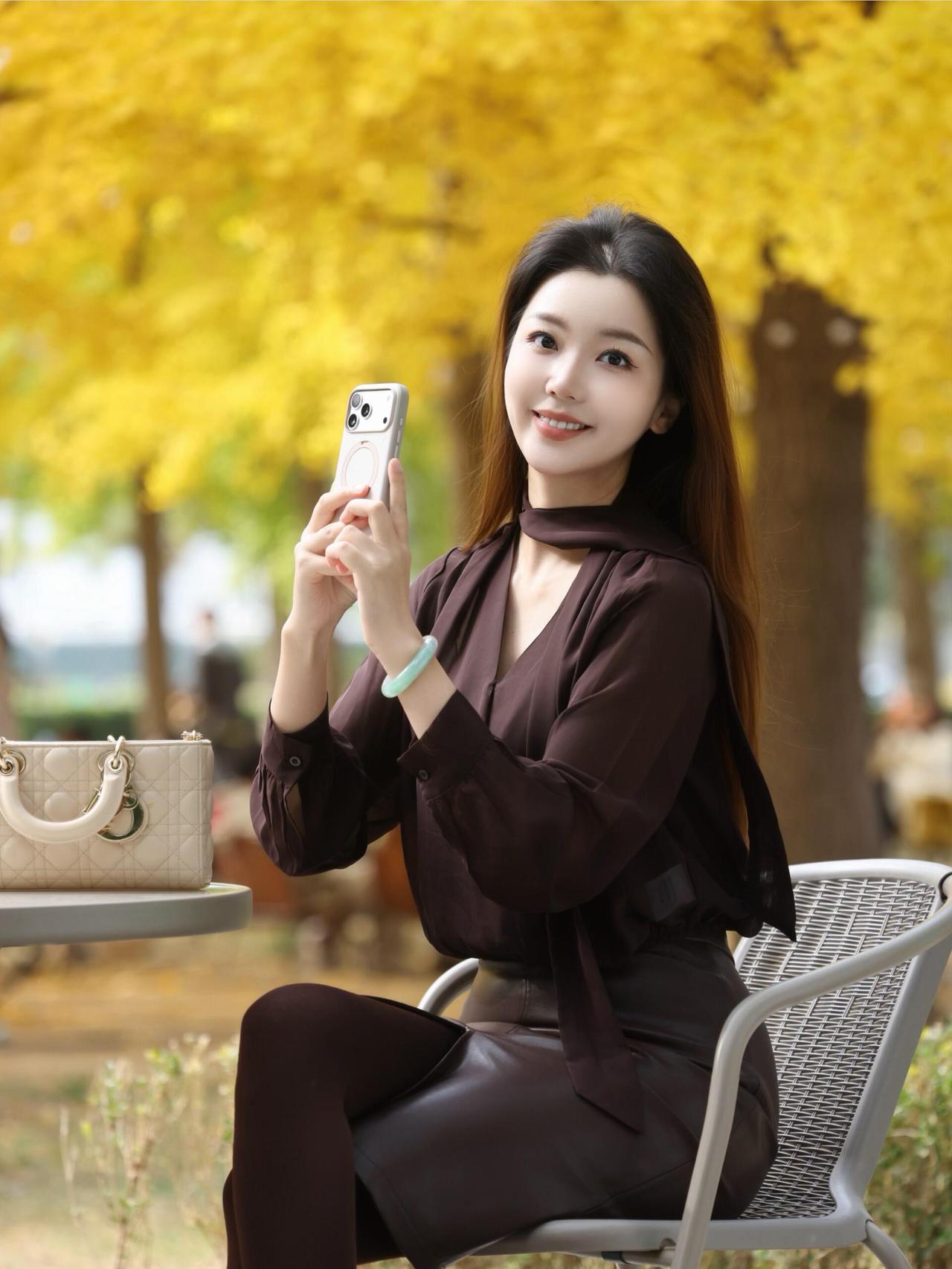 满城尽带黄金甲,风过处,银杏叶簌簌叠成秋的信笺。 她立在金箔般的光影里,茶棕裙裾裹着温柔,腕间的淡青是秋波里漾开的云。 抬眸时,碎发吻过肩线,连风都慢成了诗。这秋季的浪漫,是树树鎏金,是她眼里盛着的半城秋光。 —————————————————————————————————— 【秋日人像摄影:如何拍“满城尽带黄金甲”氛围感】 ✅背景选景:选枝叶茂密的银杏,用大光圈虚化,让金黄铺满背景。 ✅色彩搭配:模特穿低饱和棕调,与金黄形成高级同色系对比,避免撞色杂乱。 ✅动态捕捉:让发丝/裙摆轻动(借助微风),抓拍自然松弛感。
