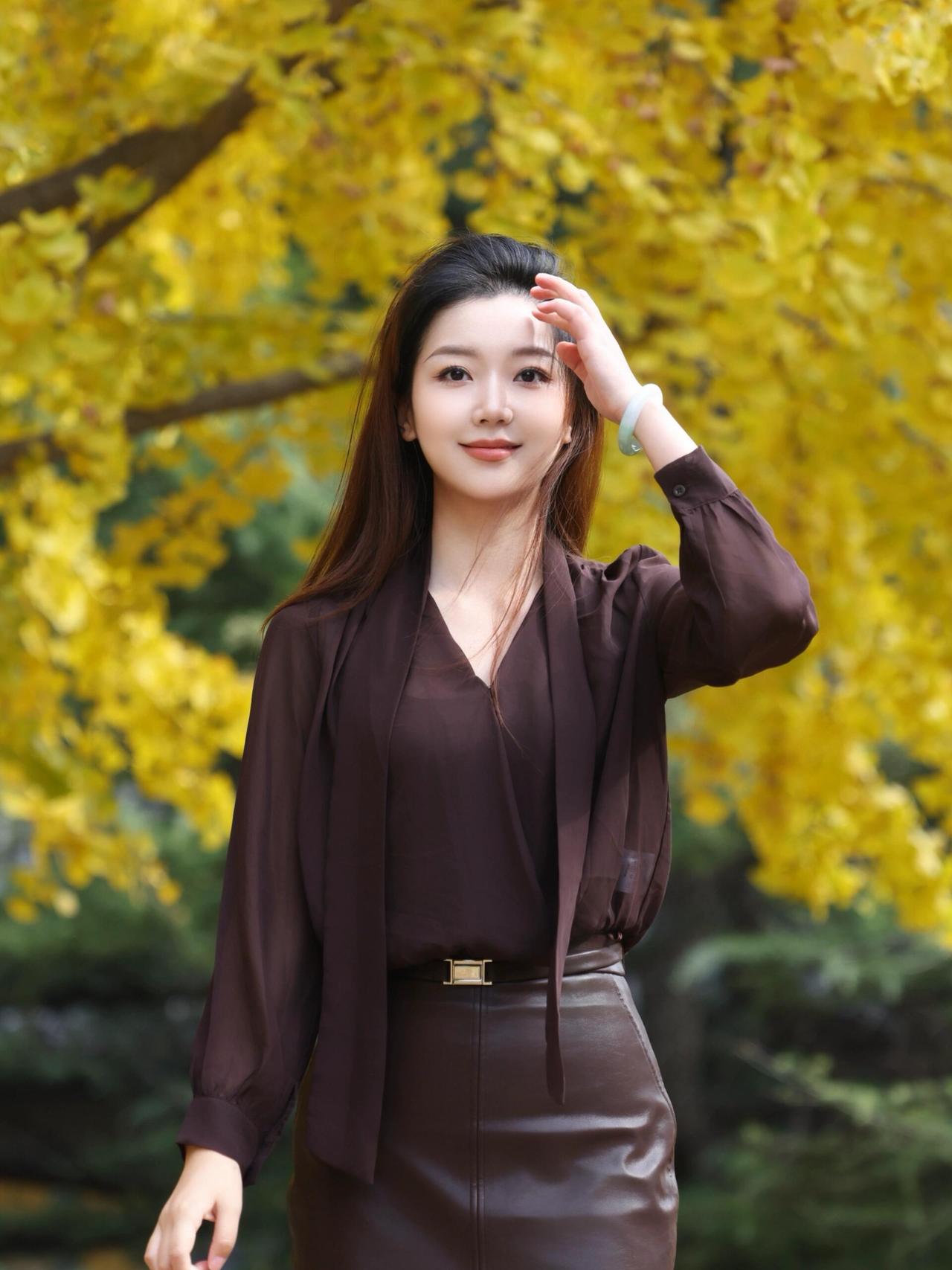满城尽带黄金甲,风过处,银杏叶簌簌叠成秋的信笺。 她立在金箔般的光影里,茶棕