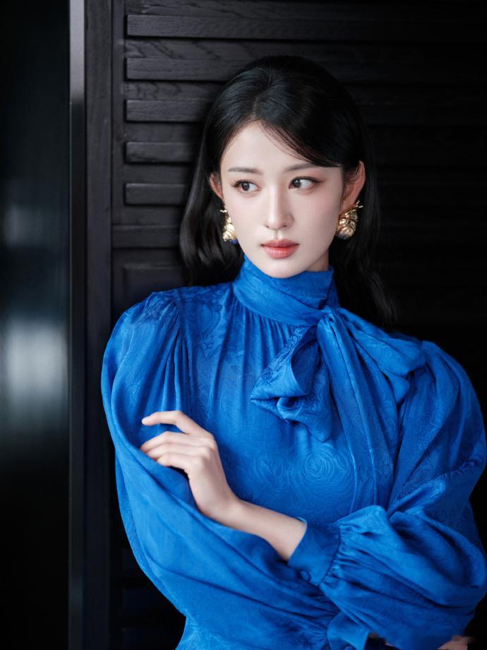 王楚然蓝色丝绒长裙配珍珠耳环太绝了!简约优雅像朴妍珍,这颜值演恶女肯定带感,求导演递恶女本子~